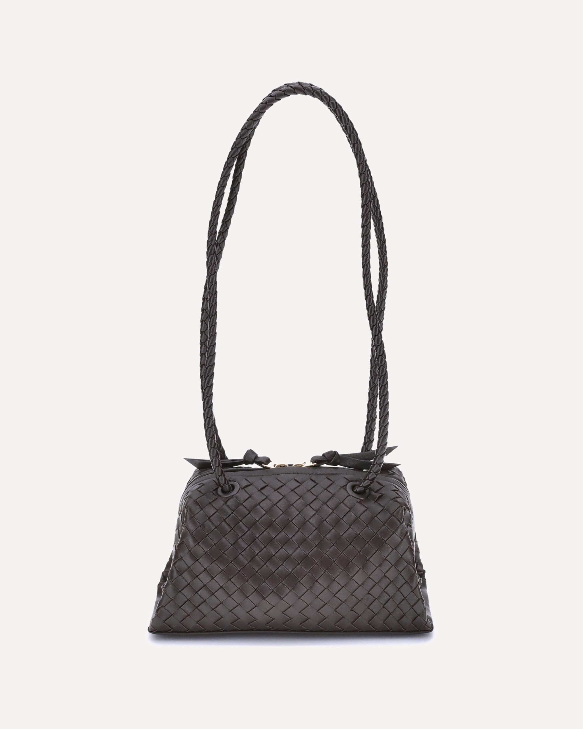 Tokyo Shoulder Bag in soft lambskin leather by Bottega Veneta, refined and essential. Featuring two upper woven tubular handles that recall the brand's distinctive craftsmanship. The double-slider zipper closure ensures practicality and security. The design is embellished with the iconic all-over woven pattern, a timeless symbol of the maison. The interior features a single large and functional compartment, perfect for elegantly storing all your essentials. DETAILS - Sku: 839111V4R02_2133 - Season: AW25 - Dimension: 22.5x22.5x11 - Composition: GENERAL 100% Lamb Ovis Aries Aries - MADE IN ITALY