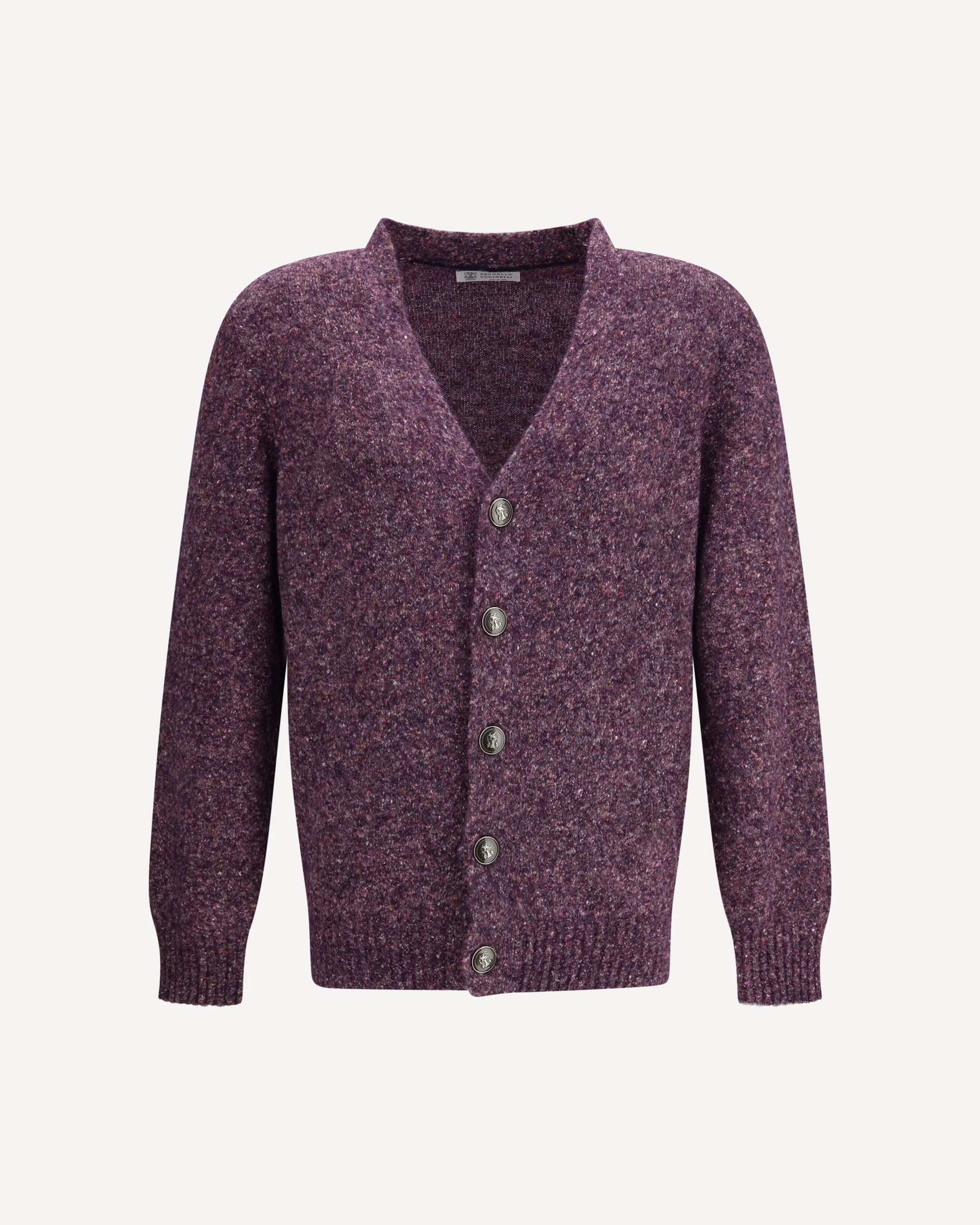 The alpaca Cardigan by Brunello Cucinelli is an elegant and warm piece with a V-neck on the front that adds a sophisticated touch. The grooved button closure on the front lends a distinctive detail. The ribbed hem and cuffs ensure a snug and comfortable fit. The melange pattern gives the cardigan a modern and refined look, ideal for a casual-chic look. DETAILS - Sku: MOH709206_CPZ88 - Season: AW25 - Fit: Regular - Composition: GENERAL 36% Alpaca Vicugna Pacos 25% Polyamide 13% Wool 13% Silk 10% Cotton 3% Viscose - MADE IN ITALY