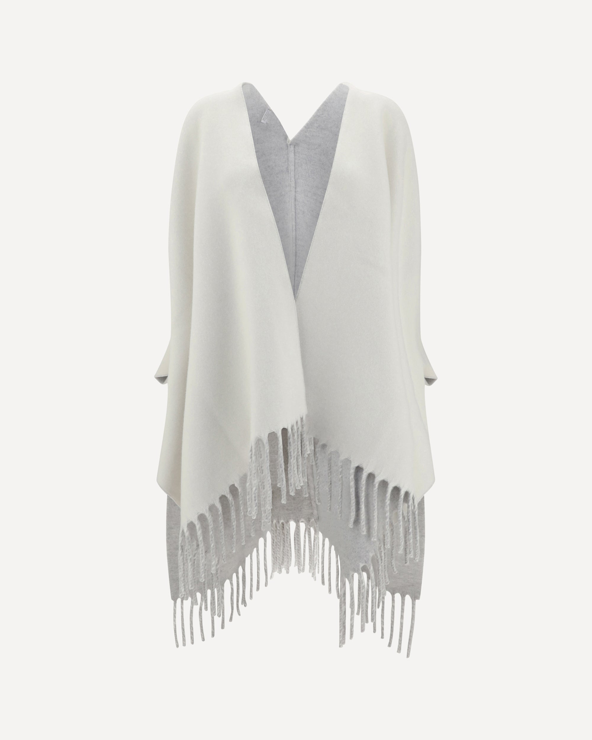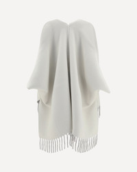 Brunello Cucinelli's wool and cashmere Poncho is a luxurious and refined garment, featuring a monochrome cape design that gives a sleek, modern look. The shawl lapels add a sophisticated touch, while the frayed hemline lends a distinctive style element. The oversized fit ensures comfort and freedom of movement, making it ideal for a casual-chic look, perfect for colder seasons. DETAILS - Sku: MSCDAGP42_CMG80 - Season: AW25 - Fit: Oversize - Composition: GENERAL 60% Wool 40% Kashmir/capra Hircus - MADE IN ITALY