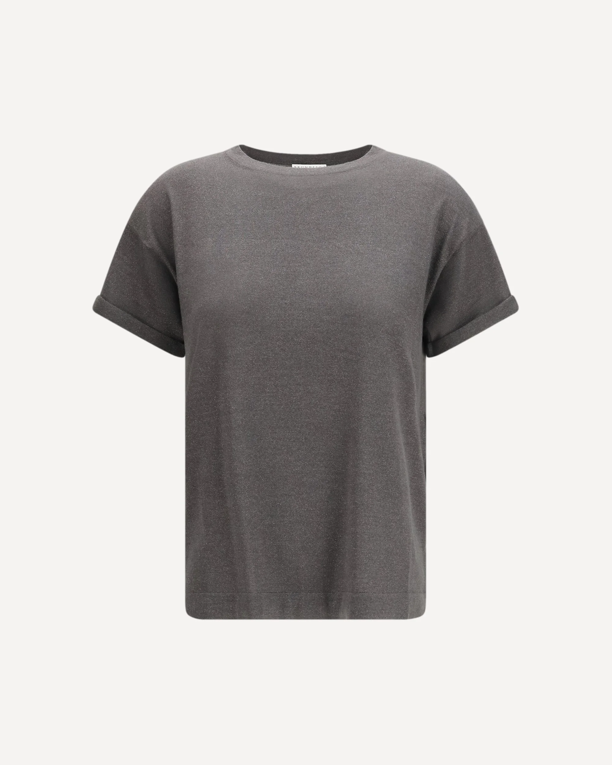 The cashmere T-shirt by Brunello Cucinelli is an elegant and versatile piece, perfect for adding a touch of luxury to your casual wardrobe. Featuring a ribbed crew neck, it has a monochrome design with a delicate glitter effect that enhances its luminosity. A must-have that combines the quality of cashmere with the sophistication of detail DETAILS - Sku: M41810000_C079 - Season: SS26 - Fit: Regular - Composition: GENERAL 20% Nylon 7% Polyester 22% Silk 51% Kashmir/capra Hircus - MADE IN ITALY