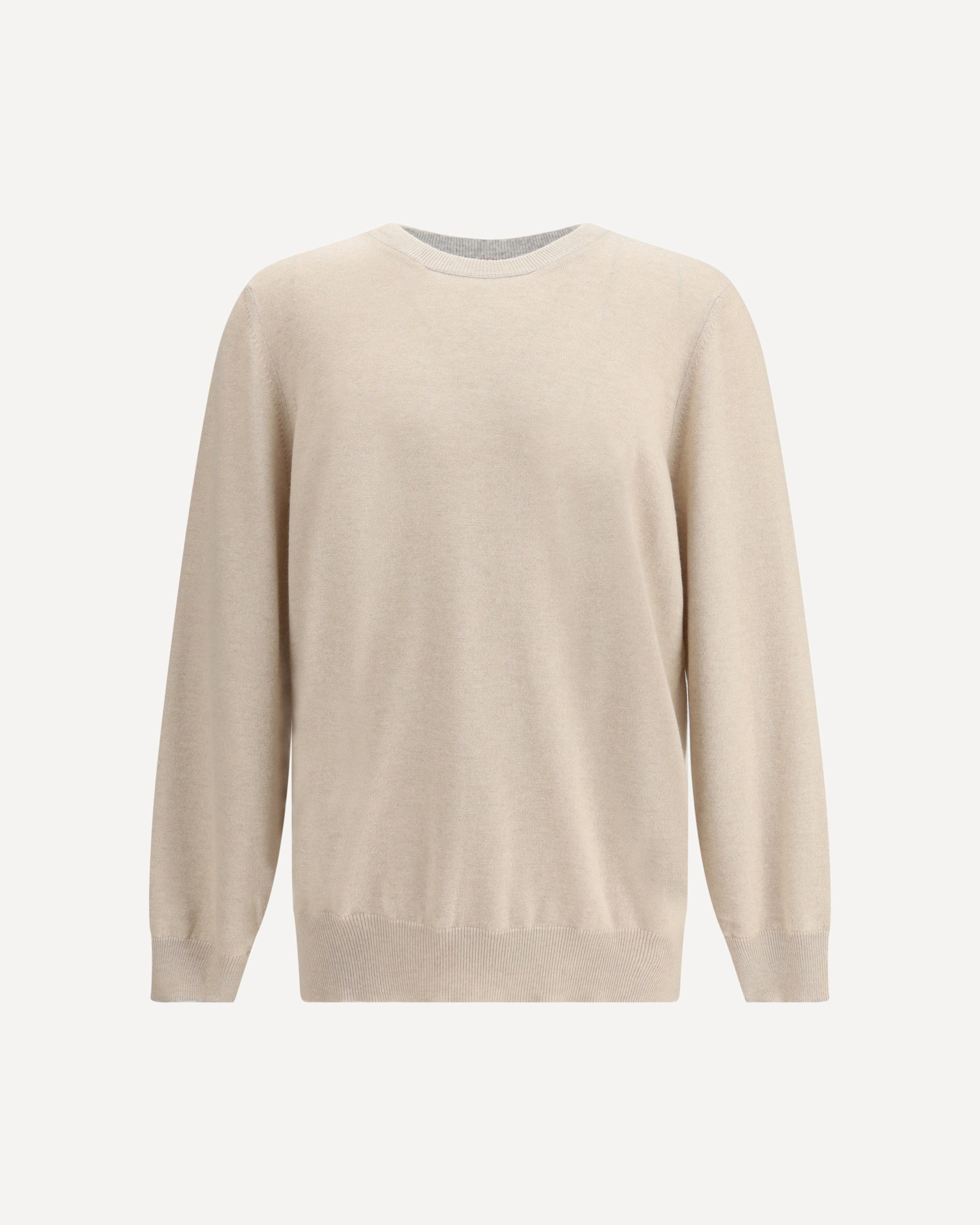 Brunello Cucinelli's cashmere Sweater combines luxury and simplicity in a men's wardrobe essential. Featuring a monochrome pattern, it has a refined ribbed crew neck, as well as ribbed cuffs and hem, ensuring a comfortable fit and clean lines. Made from the highest quality yarn, it is perfect for adding a touch of understated elegance to any look, whether casual or more formal. DETAILS - Sku: M2200100_CS396 - Season: AW25 - Fit: Regular - Composition: GENERAL 100% Kashmir/capra Hircus - MADE IN ITALY