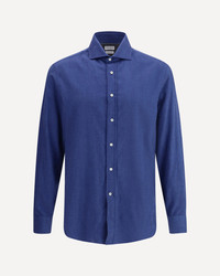 Herringbone Cotton and Lyocell-Blend Shirt Blue