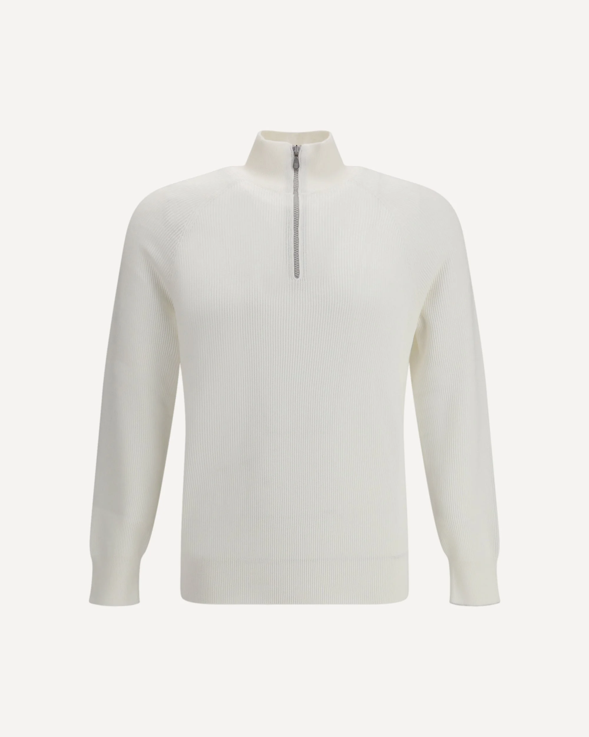 The Sweater by Brunello Cucinelli elevates cotton through a relaxed elegance highlighted by its ribbed construction. The high neckline and half-zip front introduce versatility, while the fine ribbed cuffs and hem bring balance to the design. The wide all-over ribbing gives the piece a distinctive yet understated character, ideal for offering comfort and refined ease in everyday moments. DETAILS - Sku: M29400104_CO312 - Season: AW25 - Fit: Regular - Composition: GENERAL 100% Cotton - MADE IN ITALY