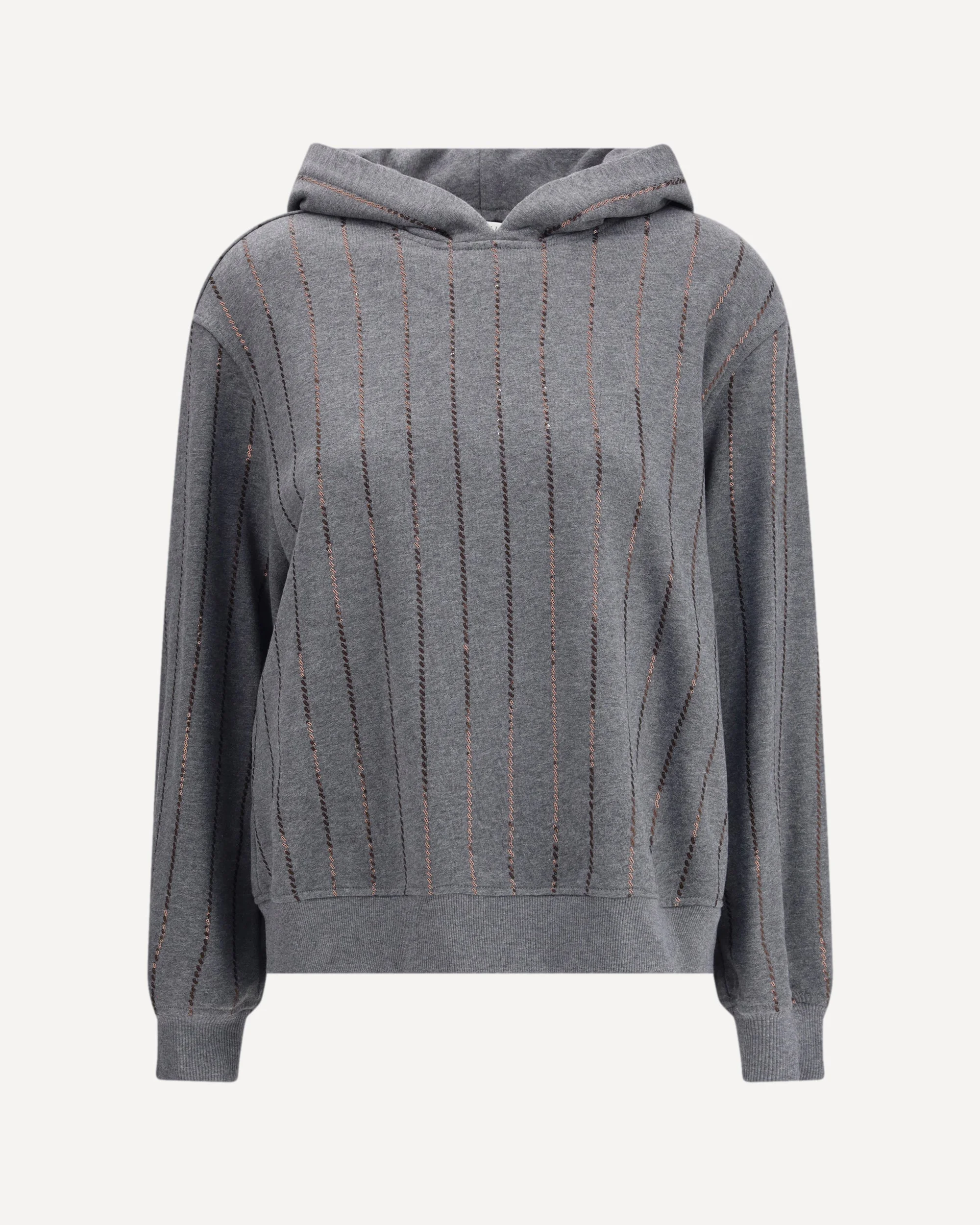 Cotton smooth French terry hooded sweatshirt with dazzling chalk stripe embroidery