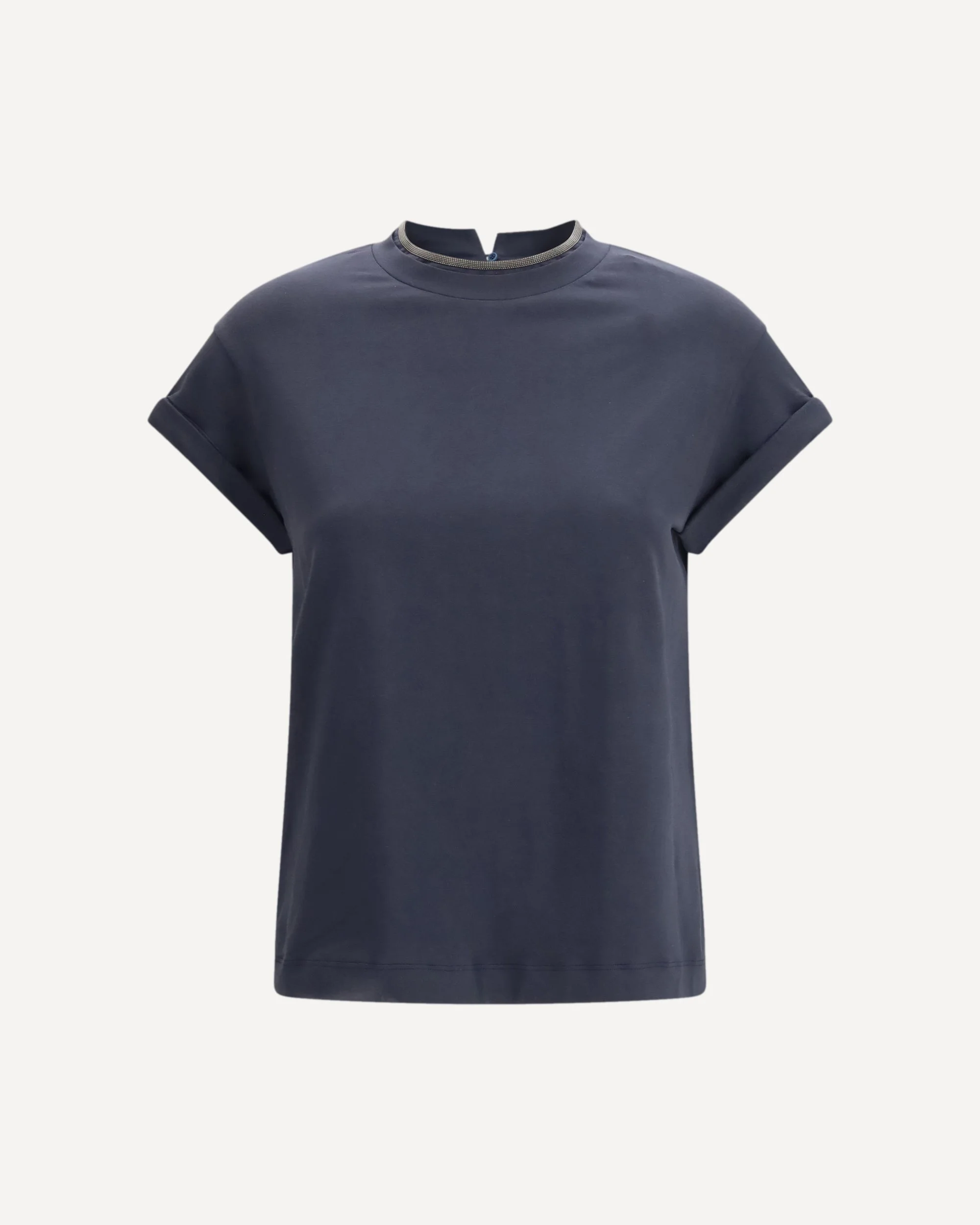 The cotton T-shirt by Brunello Cucinelli features a clean, understated silhouette elevated by the brand’s iconic detailing. The neckline is embellished with contrasting monili, while a back keyhole with button closure adds a refined touch. Finished with a regular fit, it balances comfort and sophisticated simplicity. DETAILS - Sku: M0T18BD200_C4224 - Season: SS26 - Fit: Regular - Composition: GENERAL 7% Elastane 93% Cotton - MADE IN ITALY