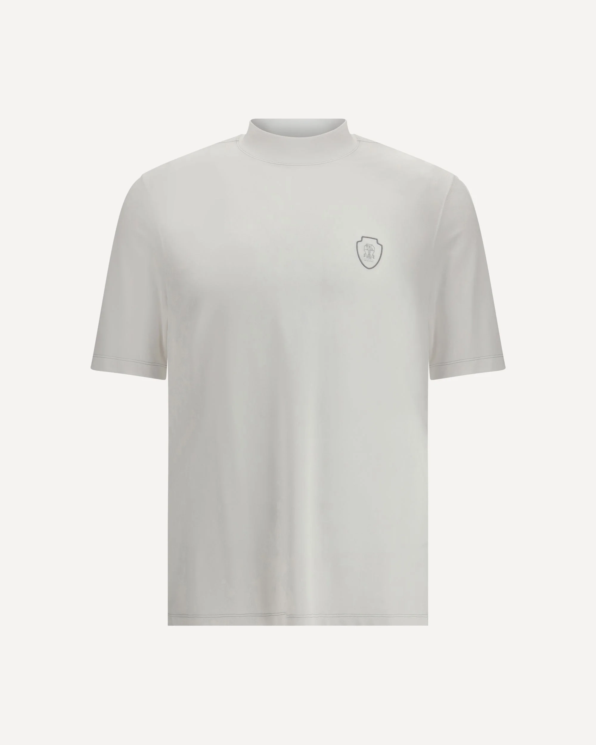 The Crew neck T-shirt by Brunello Cucinelli embodies understated elegance with the brand’s signature refinement. Crafted from soft cotton, it features a clean silhouette with a crew neck and short sleeves designed for comfort and versatility. The crest detail on the chest adds a subtle yet distinctive touch, reflecting the craftsmanship and sophisticated taste rooted in Solomeo. A timeless piece that blends simplicity with modern elegance. DETAILS - Sku: MW8641310F_C159 - Season: AW25 - Fit: Regular - Composition: GENERAL 51% Polyamide 44% Polyester 5% Elastane - MADE IN ITALY