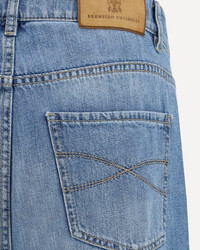 The cotton Jeans by Brunello Cucinelli are a casual yet refined style, perfect for a versatile, contemporary look. The front button closure adds a touch of originality, while the straight five-pocket style offers a comfortable fit and classic design. Belt loops on the waistband allow you to customize the fit. A leather patch with the brand's iconic pressure-printed signature is applied to the back, adding a distinctive, high-quality detail. The turn-up hem adds a touch of elegance to the design, making these jeans ideal for those seeking a garment that is both luxurious and practical. DETAILS - Sku: M0Z37D3210_C1470 - Season: SS26 - Fit: Regular - Composition: GENERAL 100% Cotton - MADE IN ITALY