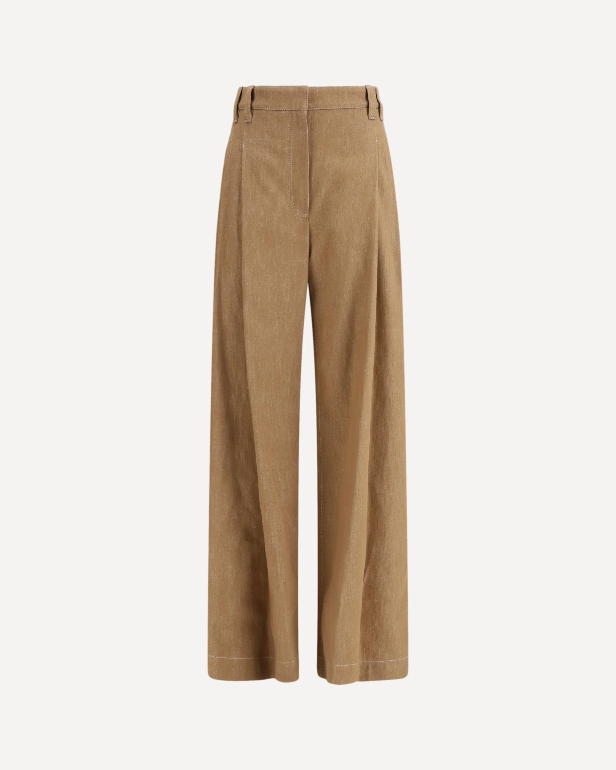 The denim-effect twill wide Pants by Brunello Cucinelli express contemporary sophistication through a tailored construction enhanced by subtle monili detailing, a signature accent of the brand. The concealed front fastening preserves a clean line, while side slit pockets and rear patch pockets complement the wide silhouette. The box-pleat detail adds structure and movement, creating a refined balance between elegance and modern appeal. DETAILS - Sku: MB125P5759_C005 - Season: SS26 - Fit: Oversize - Composition: GENERAL 100% Cotton - MADE IN ITALY