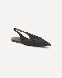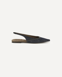 Brunello Cucinelli's denim slingback Ballerinas combine casual elegance with refined details. Featuring a back elastic band, they have a soft suede lining and a leather sole with TPU slip-resistant rubber inserts on the heel and toe. The nickel-free jewel decoration adds a bright and distinctive touch, in perfect Cucinelli style. DETAILS - Sku: MZ12C3001P_C001 - Season: AW25 - Composition: UPPER 100% Cotton GENERAL 100% Calf Leather Bos Taurus - MADE IN ITALY