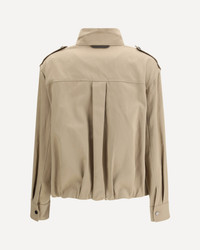 The Jacket by Brunello Cucinelli blends functional detailing with the brand’s understated sophistication. Its double closure with zip and snap buttons ensures practical versatility, while the stand collar with snap fastening adds a clean, structured finish. Patch pockets with flaps lend an authentic utility touch, complemented by snap-adjustable cuffs. The unlined construction keeps the design lightweight, and the elasticated hem shapes a comfortable, modern silhouette. DETAILS - Sku: ML5977782_C631 - Season: SS26 - Fit: Regular - Composition: OUTER 69% Cotton 31% Linen INNER 74% Acetate 26% Silk - MADE IN ITALY