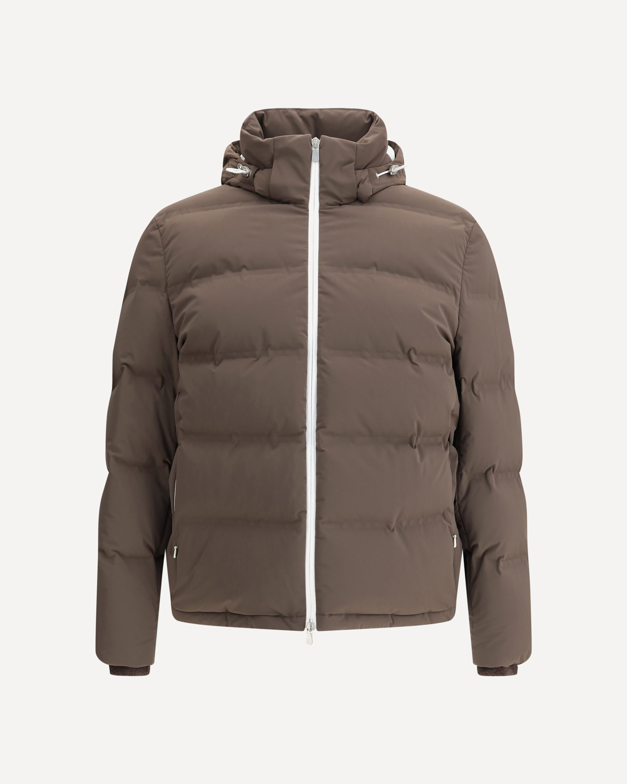 Brunello Cucinelli's Down Jacket is a stylish and functional garment designed to offer warmth without sacrificing style. The high-necked design provides protection from the cold, while the adjustable drawstring and removable zippered hood adds versatility. The double-slider front zipper closure offers convenience and comfort, and the two zippered welt pockets are ideal for safely storing small items. Ribbed cuffs and an all-over quilted and padded design ensure a comfortable and protective fit. The monochrome pattern gives the garment a stylish and versatile look, while the regular fit makes it perfect for any occasion. DETAILS - Sku: MM4911836_CTJ90 - Season: AW25 - Fit: Regular - Composition: GENERAL 100% Polyester - MADE IN ITALY