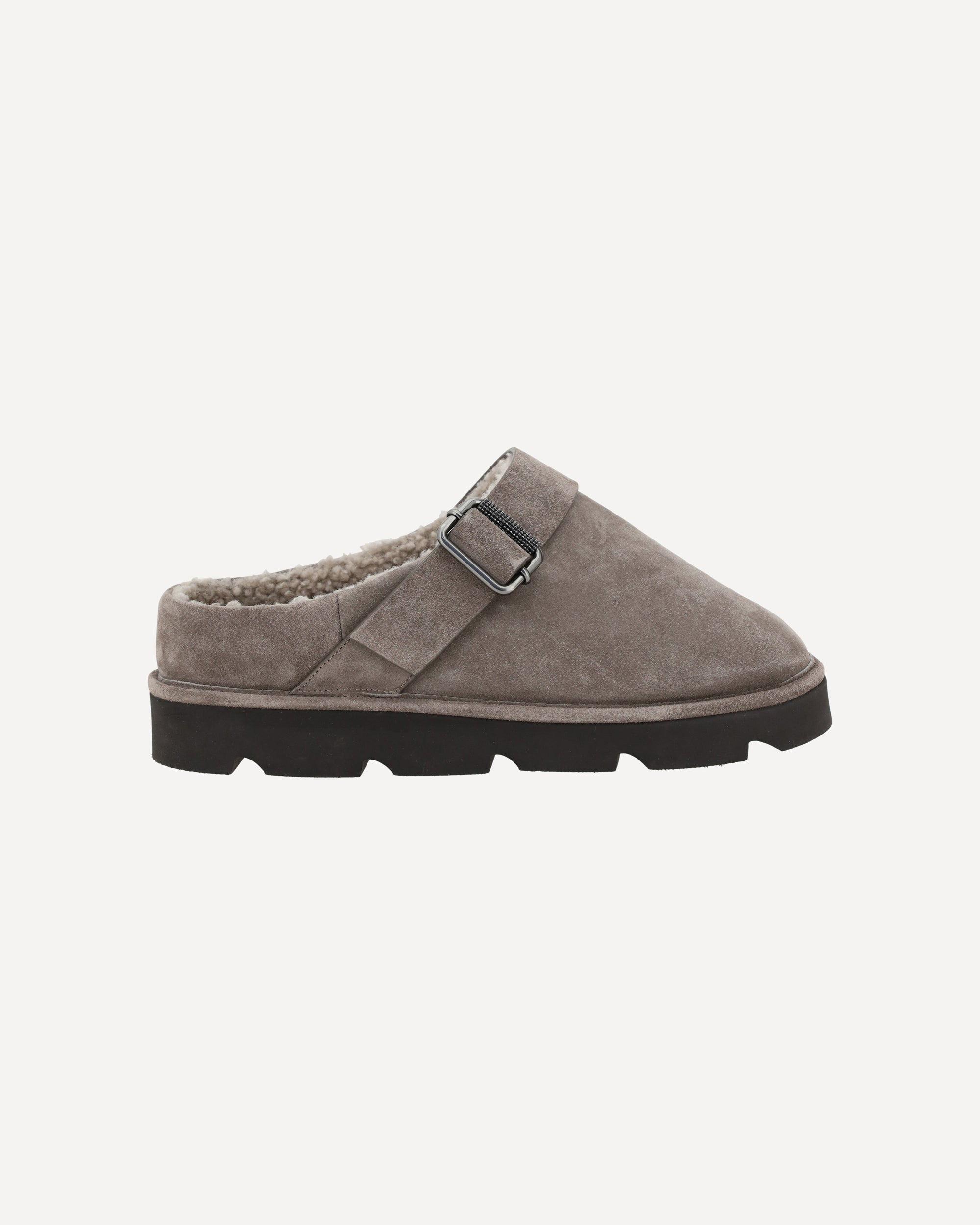 Brunello Cucinelli's fur-trimmed sabots are a stylish and comfortable garment with a rounded toe that ensures a comfortable fit. The knurled sole offers a good grip, while the adjustable buckle detail on the front adds a touch of style and personalization. Perfect for a sophisticated and casual look at the same time, these sabots combine luxury and practicality, ideal for fall and winter. DETAILS - Sku: MZSFG3120_C2659 - Season: AW25 - Composition: GENERAL 100% Calf Leather Bos Taurus - MADE IN ITALY
