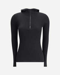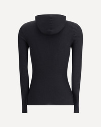 Sparkling cashmere and silk lightweight rib knit hooded sweater with shiny detail
