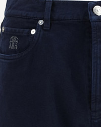 The Iconic Fit five-pocket Trousers in garment-dyed denim by Brunello Cucinelli combine versatility and sophistication through refined craftsmanship. Made from pure cotton, the denim undergoes a garment-dyeing process that enhances the fabric with subtle, irregular shades, creating a unique finish. The Iconic Fit features a slightly high waist and a straight leg for a balanced, relaxed silhouette. Details include metal button fastening, front pockets with coin pocket, patch back pockets, and a plain hem. DETAILS - Sku: M237PO1090_C7193 - Season: SS26 - Fit: Regular - Composition: GENERAL 100% Cotton - MADE IN ITALY