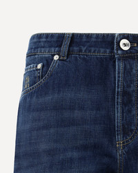 Cotton Jeans by Brunello Cucinelli, featuring a front button and zipper closure, a five-pocket straight style, waistband loops, a leather patch with iconic brand signature pressure-printed applique at the back, and a turned-up hem. DETAILS sku M0Z37D3210_C1468 composition: COTTON 100% color group: BLUE gender: MAN season: AW24 size chart: RTW IT category name: PANTS