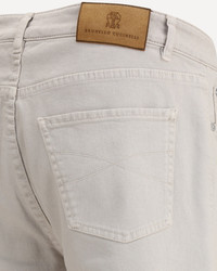 Brunello Cucinelli's cotton Jeans are a timeless and versatile piece with a classic five-pocket design. The front button closure and belt loops at the waistband allow for a comfortable and adjustable fit. The distinctive detail is the iconic leather patch with the brand's signature press-stamped signature, applied to the back, which adds a touch of understated elegance. The embroidered logo on the front breast pocket and turn-up hem complete the design, giving it a refined, polished look. DETAILS - Sku: M277PD3210_C7008 - Season: SS26 - Fit: Regular - Composition: GENERAL 99% Cotton 1% Elastane - MADE IN ITALY