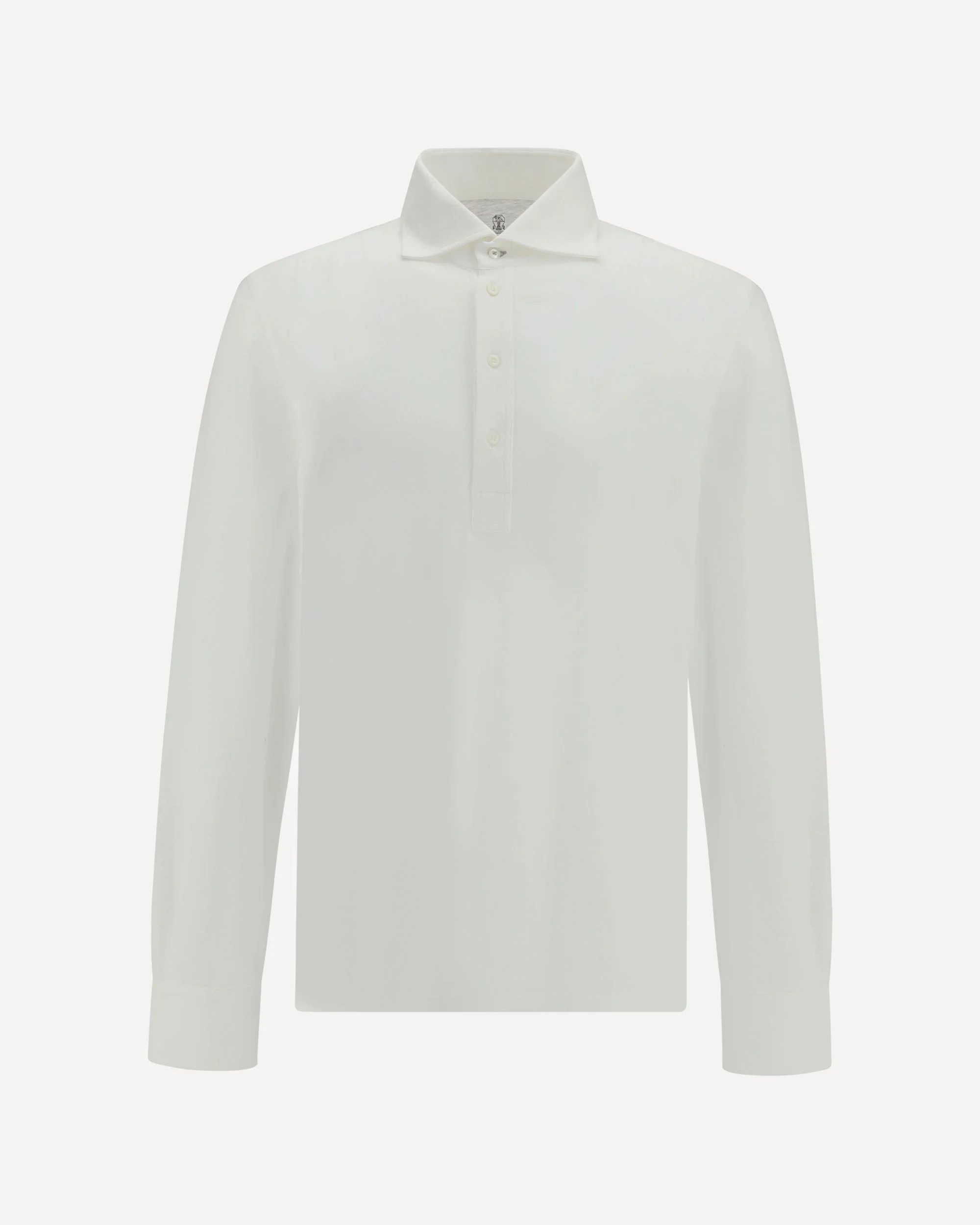 The long-sleeved cotton Shirt by Brunello Cucinelli embodies refined simplicity and timeless quality through the use of natural materials. The classic collar and front button closure lend an essential elegance, while the adjustable cuffs ensure a comfortable and tailored fit. Its soft texture and regular silhouette create a sense of balance and ease, making this piece a versatile wardrobe staple that captures the spirit of relaxed sophistication. DETAILS - Sku: ME8543914_C6159 - Season: AW25 - Fit: null - Composition: GENERAL 100% Cotton - MADE IN ITALY