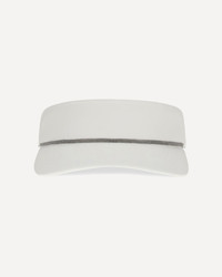 Nylon Visor with Shiny Band by Brunello Cucinelli combines functionality and elegance. The sporty design is embellished with a shiny band and a delicate nickel-free jewel decoration, adding a refined touch in the full style of the fashion house. DETAILS - Sku: MCAP90097_C007 - Season: AW25 - Composition: GENERAL 93% Polyester 7% Polyurethane - MADE IN ITALY