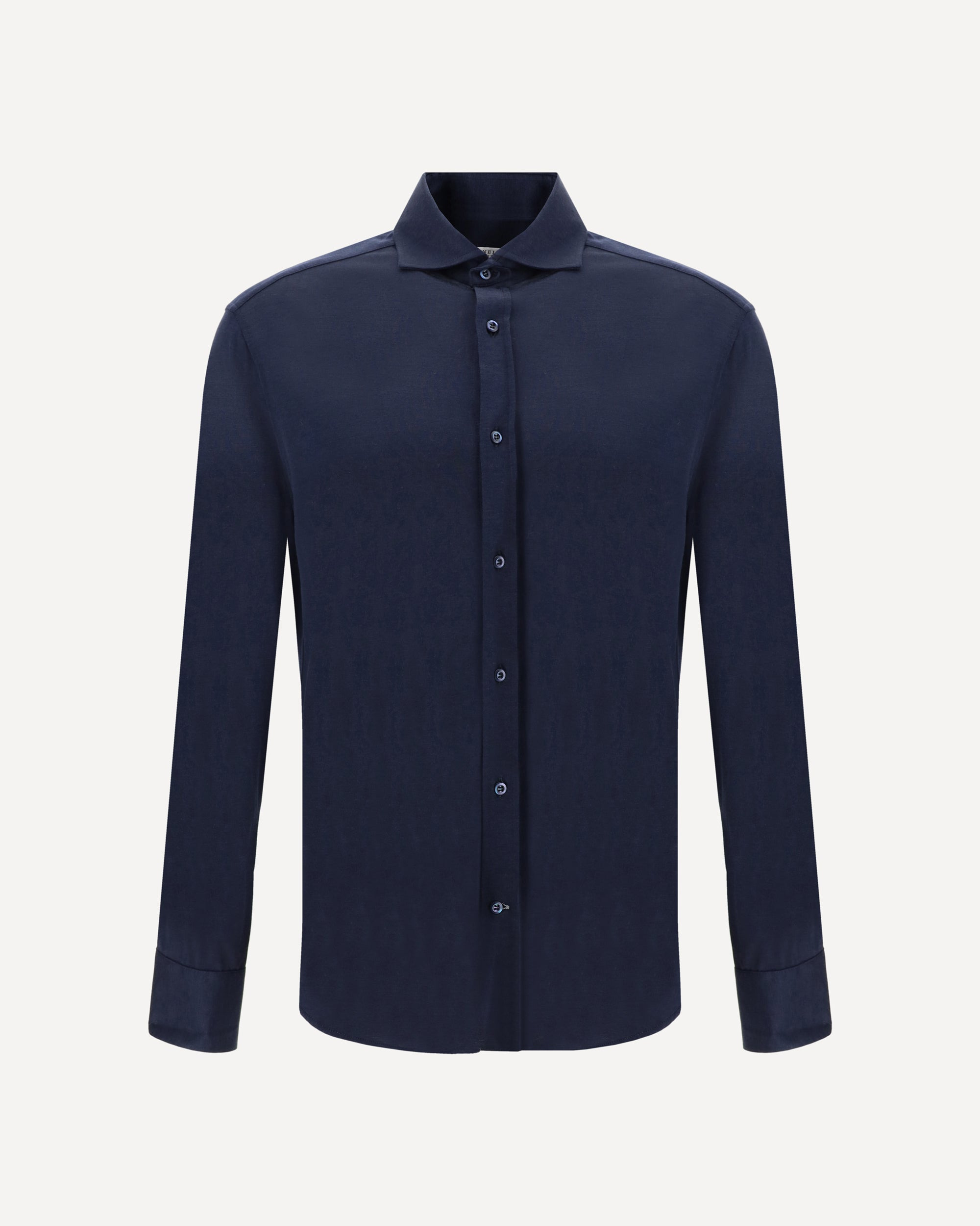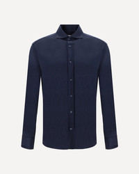 Silk Shirt by Brunello Cucinelli featuring classic collar, front button fastening, adjustable button cuffs, monochrome pattern, regular fit. DETAILS sku MH8366686_C6134 composition: SILK 62% COTTON 38% color group: BLUE gender: MAN season: AW24 size chart: STANDARD category name: SHIRTS