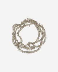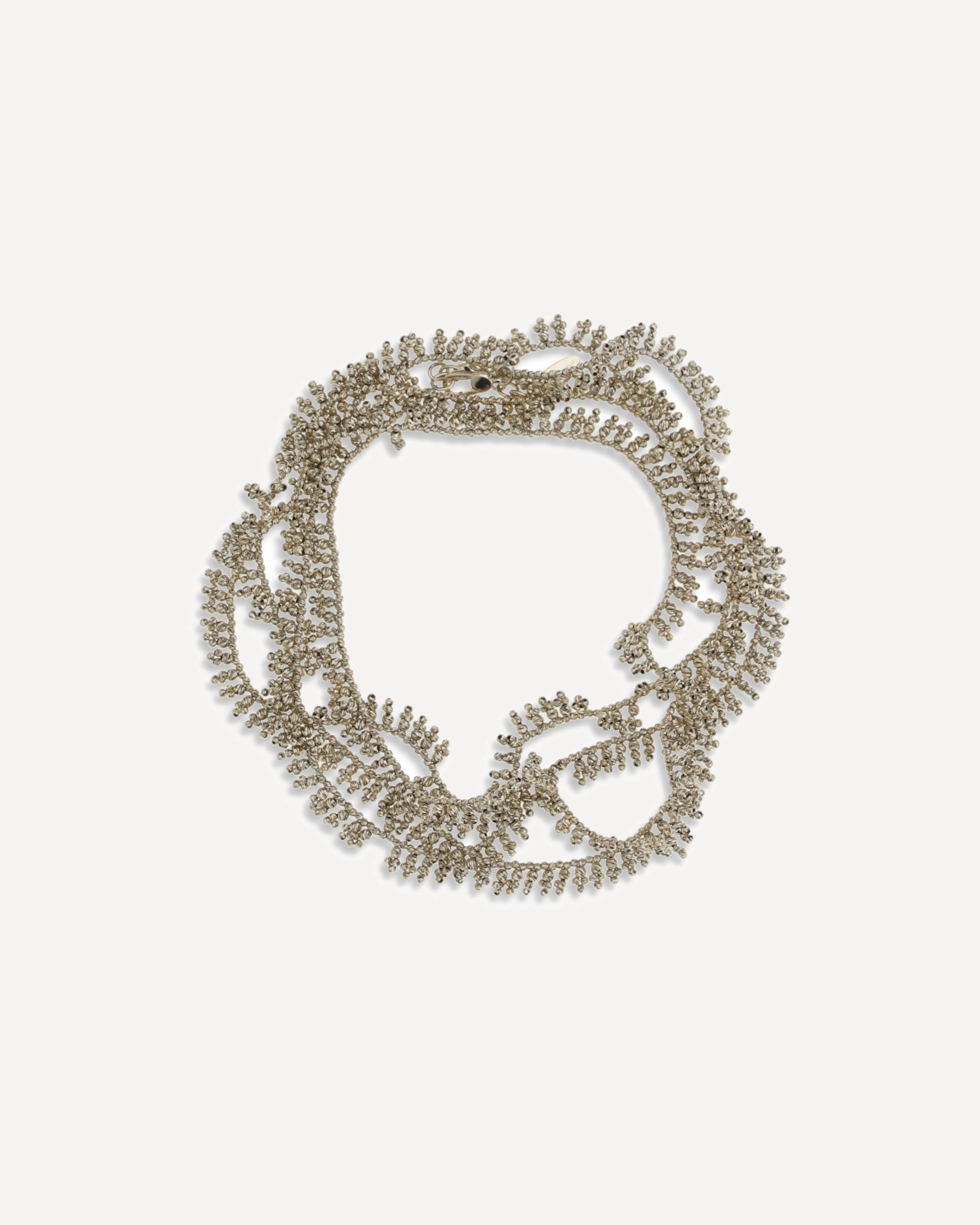 Brunello Cucinelli's silver Knotted Bracelet is an elegant and refined accessory designed for those who like to stand out discreetly. Made entirely of Nickel-free metal, it is perfect for even the most sensitive skin. Its maximum length, about 150 cm, allows it to be wrapped several times around the wrist or adapted to different styles and personal preferences. The adjustable hook-and-eye closure allows it to be worn with ease while providing a secure and comfortable fit. The woven design gives a handcrafted and sophisticated touch, in perfect Cucinelli style. DETAILS - Sku: MBOW9LA93P_C2231 - Season: AW25 - Composition: GENERAL 100% Silver - MADE IN ITALY