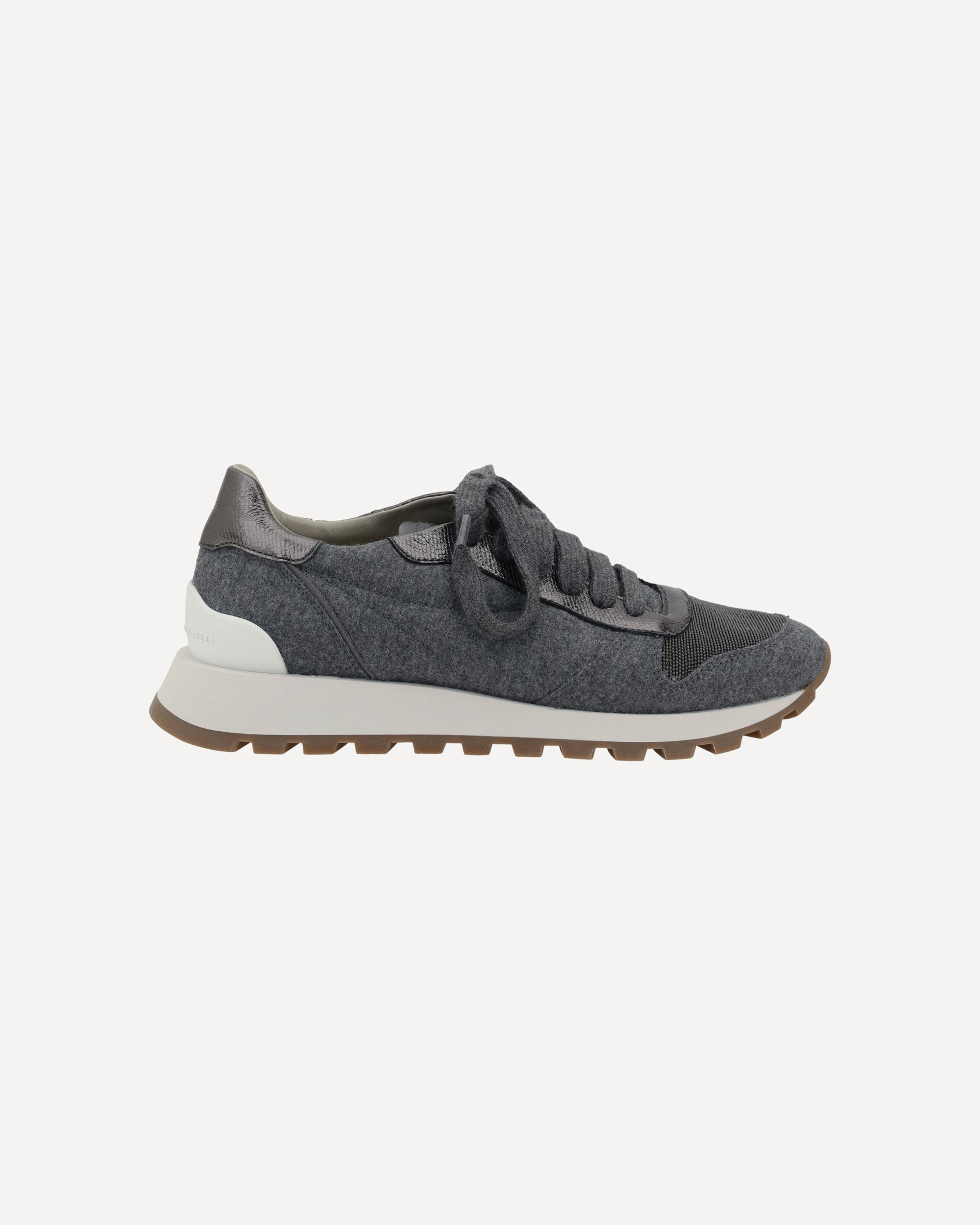 Brunello Cucinelli's Sneakers combine elegance and comfort. The melange fabric design lends a casual touch, while the front lace-up closure ensures an adjustable fit. The round toe ensures comfort, while the knurled sole adds a modern touch and more grip. The shiny bead detail on the front enhances the brand's distinctive aesthetic. Completing the design is the logo-embossed press stud insole, a symbol of exclusivity and craftsmanship. DETAILS - Sku: MZ26G1960_C003 - Season: AW25 - Composition: UPPER 100% Fleece Wool SOLE 100% Rubber - MADE IN ITALY