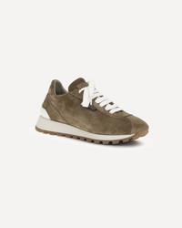 The leather Sneakers by Brunello Cucinelli combine elegance and comfort. The suede design lends a refined touch, while the front lace-up closure ensures an adjustable fit. The round toe ensures comfort, while the knurled platform sole adds a modern touch and extra grip. The shiny bead detail on the front enhances the brand's distinctive aesthetic. Completing the design is the logo-embossed press stud insole, a symbol of exclusivity and craftsmanship. DETAILS - Sku: MZSFG2110_C8921 - Season: SS26 - Composition: SOLE 100% Rubber UPPER 100% Calf Leather Bos Taurus - MADE IN ITALY