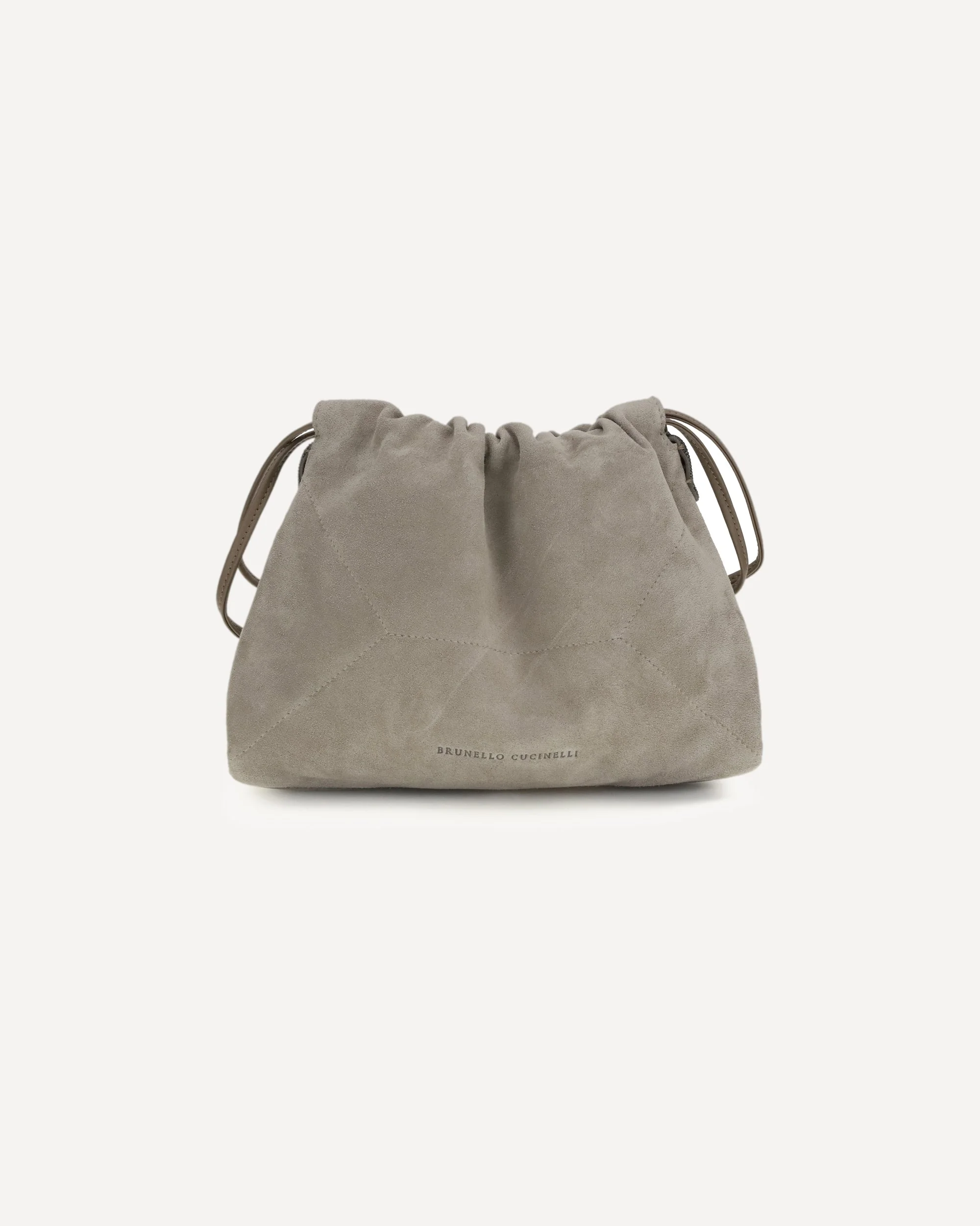 The suede Pouch Bag by Brunello Cucinelli is distinguished by a refined and essential style. Featuring a drawstring closure and shoulder strap, it features a leather lining with a practical inside pocket. The design is embellished with a nickel-free monile decoration, which adds a bright and sophisticated touch. DETAILS - Sku: MBDLD2808_C5859 - Season: SS26 - Dimension: 25x25x2 - Composition: GENERAL 100% Calf Leather Bos Taurus - MADE IN ITALY