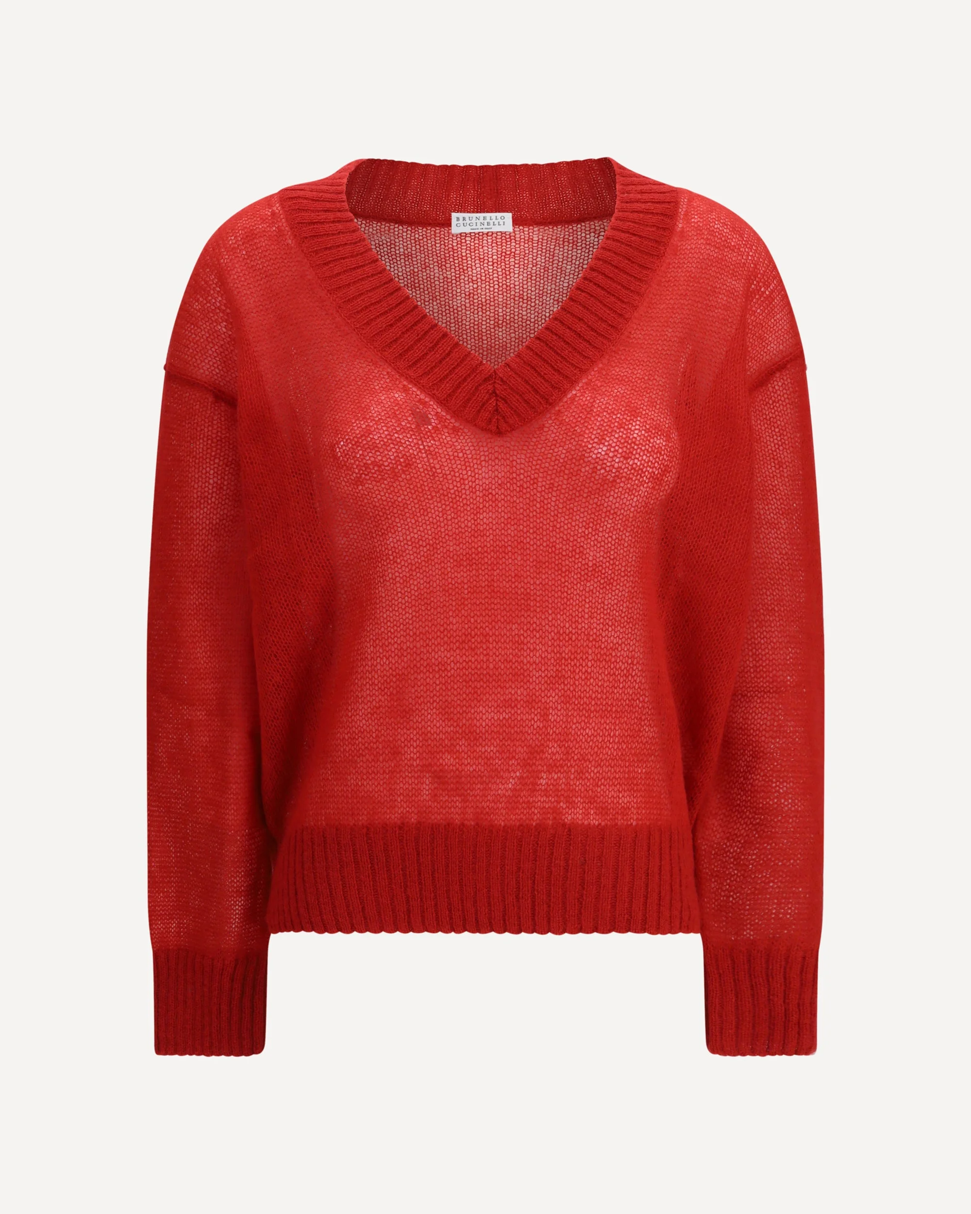 The Sweater in virgin wool and mohair with V-neck by Brunello Cucinelli embodies essential elegance through precious materials and refined craftsmanship. The blend of virgin wool and mohair creates a lightweight texture with a subtle sheer effect, enhanced by a smooth knit finish. Dropped shoulders and ribbed trims shape soft volumes and ensure a comfortable fit with modern sophistication. DETAILS - Sku: M2I776852_C9053 - Season: SS26 - Fit: Oversize - Composition: GENERAL 50% Mohair 36% Polyamide 14% Wool Ovis Aries - MADE IN ITALY