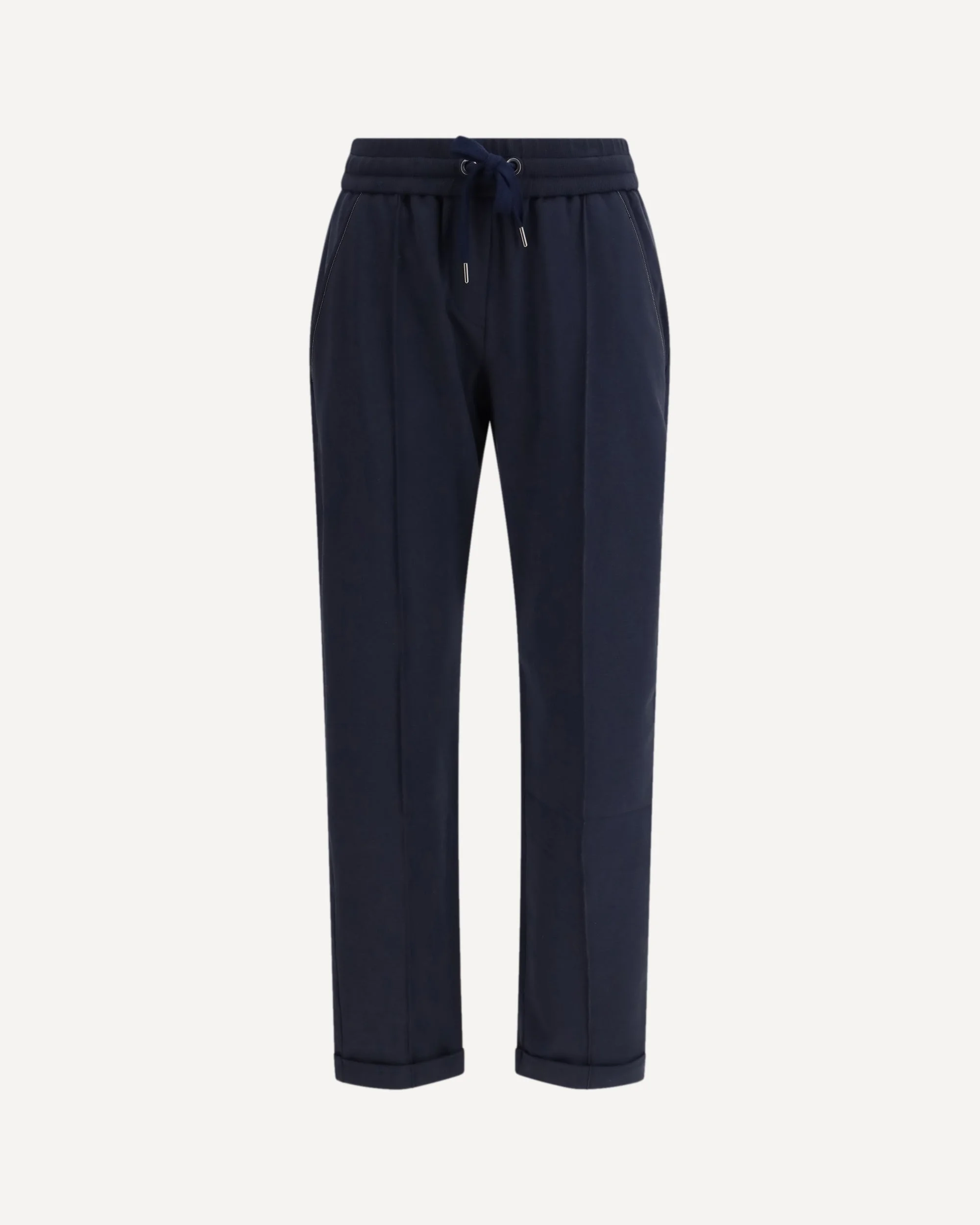The Track stretch-fleece Trousers with monili detailing by Brunello Cucinelli blend effortless comfort with refined craftsmanship. A ribbed elastic waistband with adjustable drawstring offers ease and adaptability, while the side pockets are accented with the brand’s signature nickel-free monili embroidery. A stitched front crease brings subtle structure to the relaxed silhouette, finished with a neat cuffed hem. A versatile piece designed to elevate everyday dressing with understated sophistication. DETAILS - Sku: MH827FB799_C4224 - Season: SS26 - Fit: Regular - Composition: GENERAL 98% Cotton 2% Elastane - MADE IN ITALY