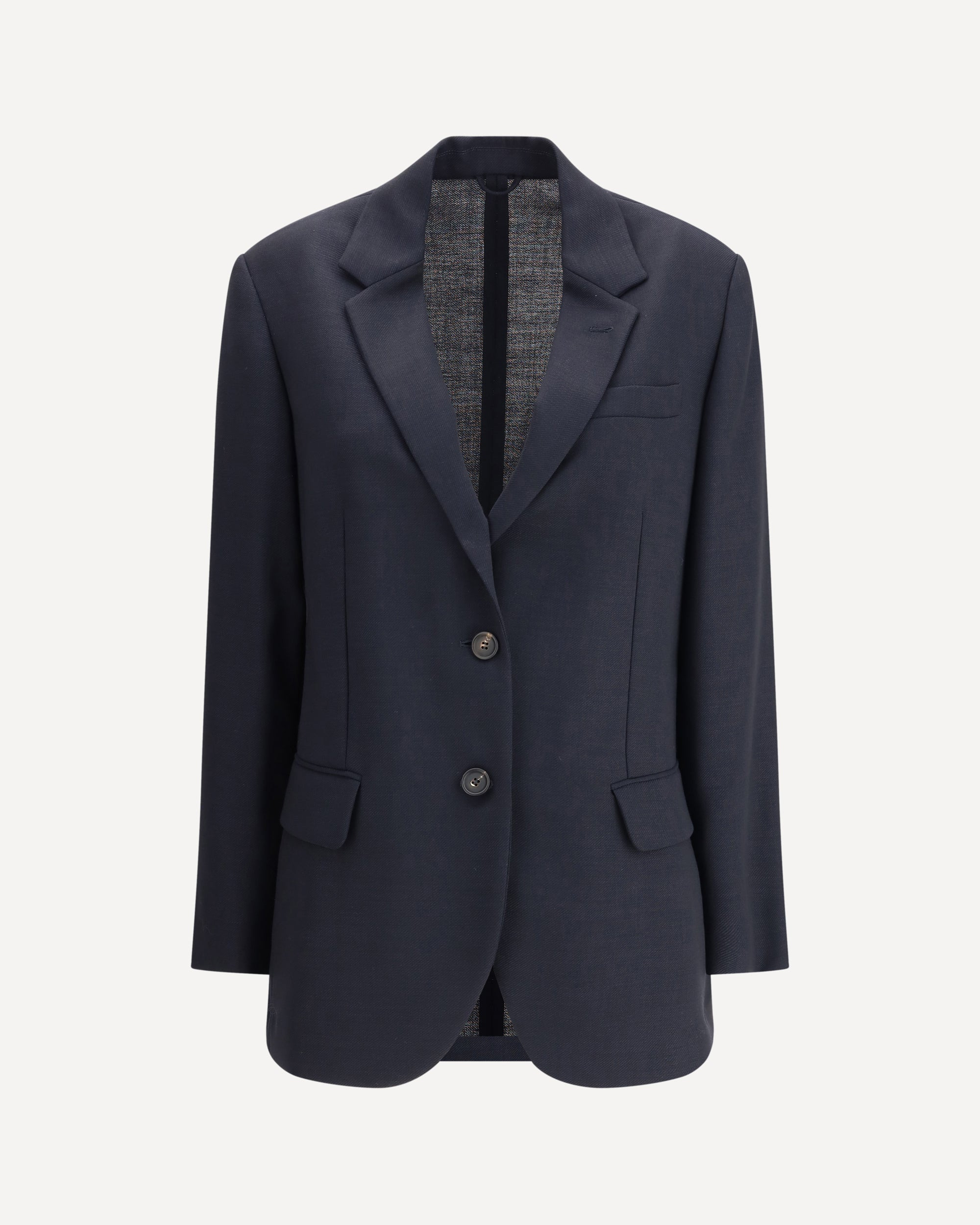 Brunello Cucinelli's virgin wool Blazer is an impeccably tailored piece. Featuring classic lapels and a two-button front closure, it has two flap welt pockets, a breast pocket and a back martingale that adds a touch of formal elegance. Ideal for a refined and timeless look. DETAILS - Sku: MG5077230_C007 - Season: AW25 - Fit: Regular - Composition: GENERAL 100% Fleece Wool - MADE IN ITALY