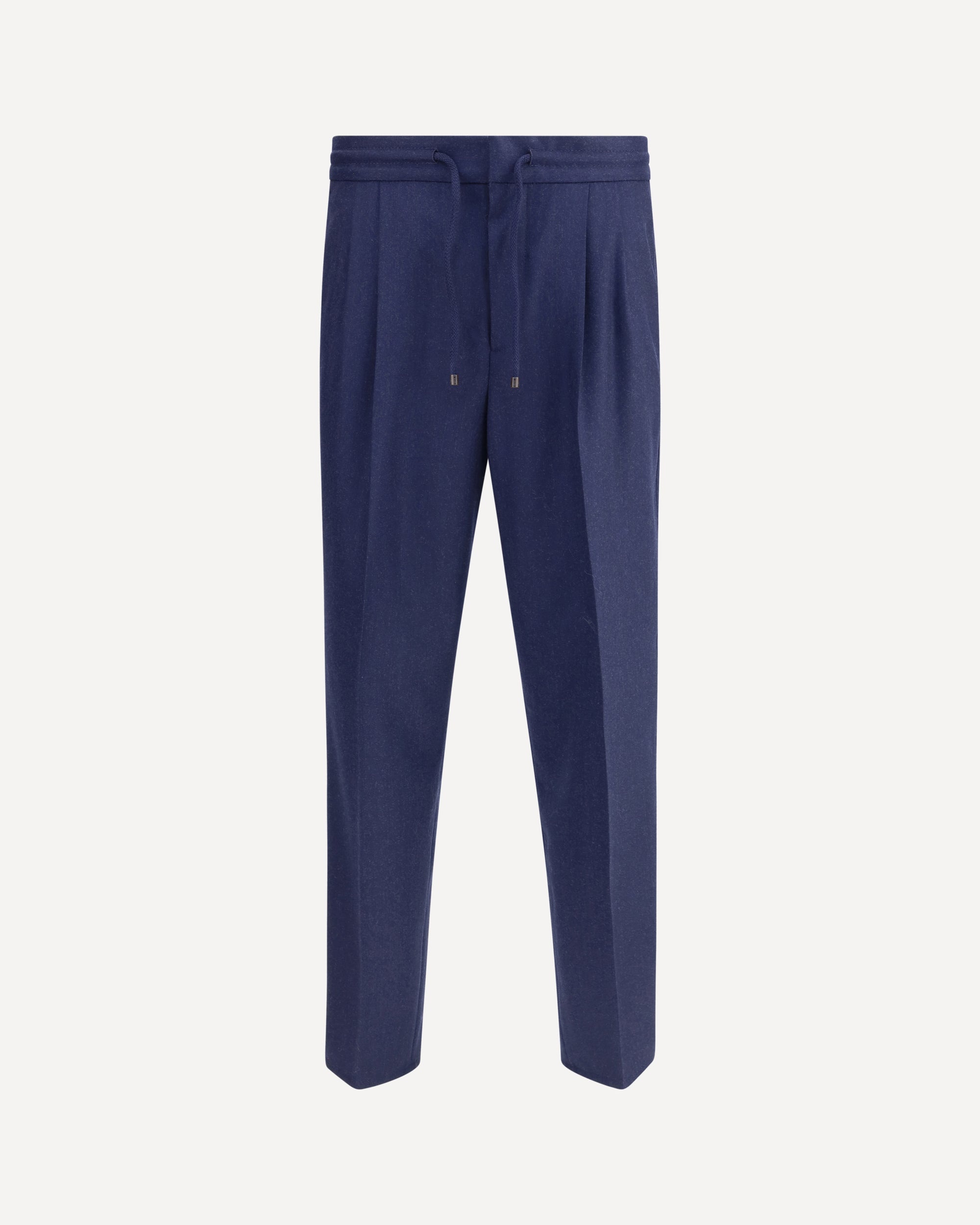 Virgin wool flannel leisure fit trousers with drawstring and double pleats