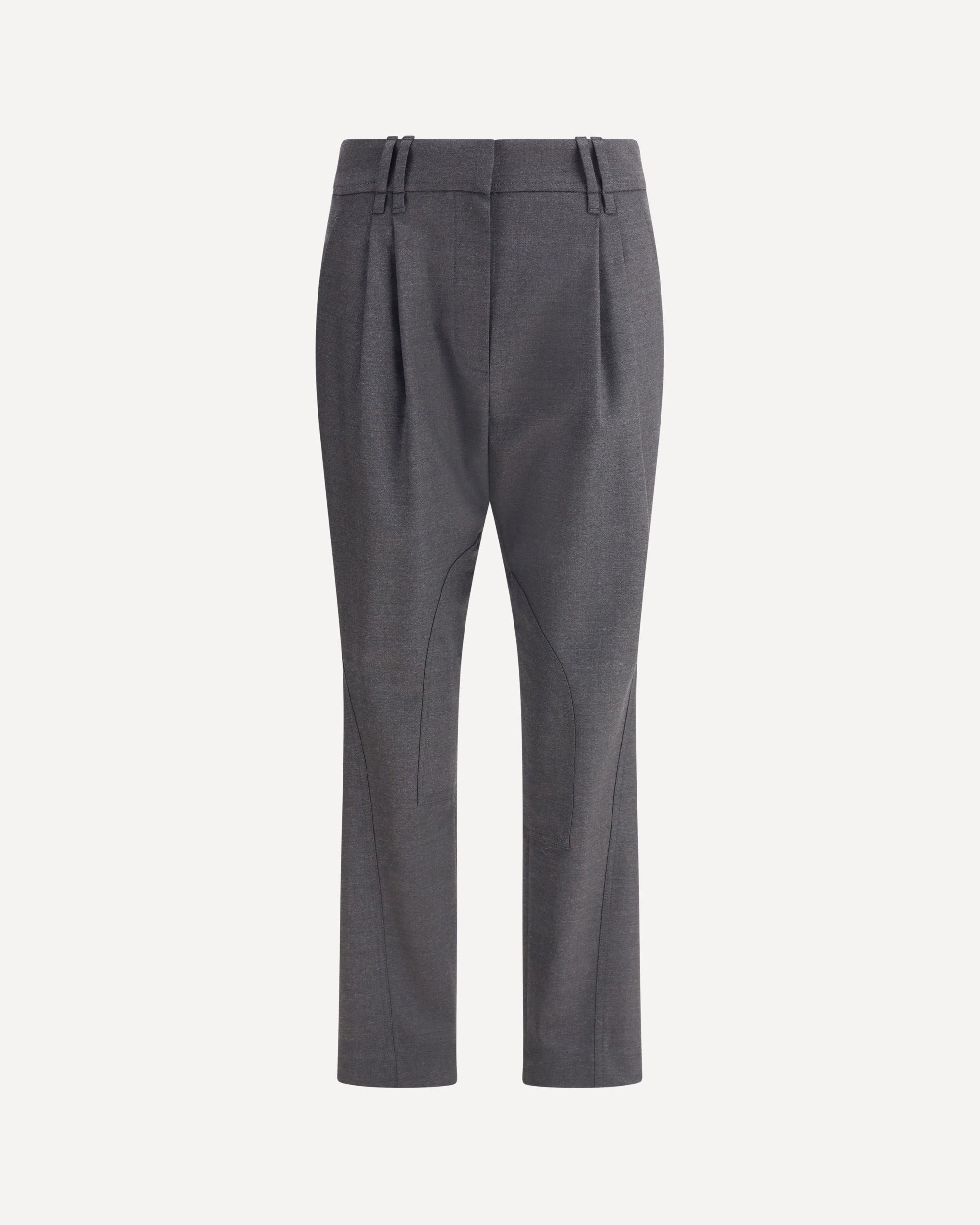 Brunello Cucinelli's virgin wool Pants are an elegant and refined piece, featuring a mid-rise waist that offers perfect comfort. The front zipper and hook-and-eye closure ensures a precise and practical fit. Two side slit pockets and two back slit pockets add functionality without compromising style. Waistband loops allow you to customize the fit, while patch flaps on the interior panels offer a touch of distinctive detail. DETAILS - Sku: MG912P9029_C870 - Season: AW25 - Fit: Regular - Composition: GENERAL 95% Fleece Wool 5% Elastane - MADE IN ITALY