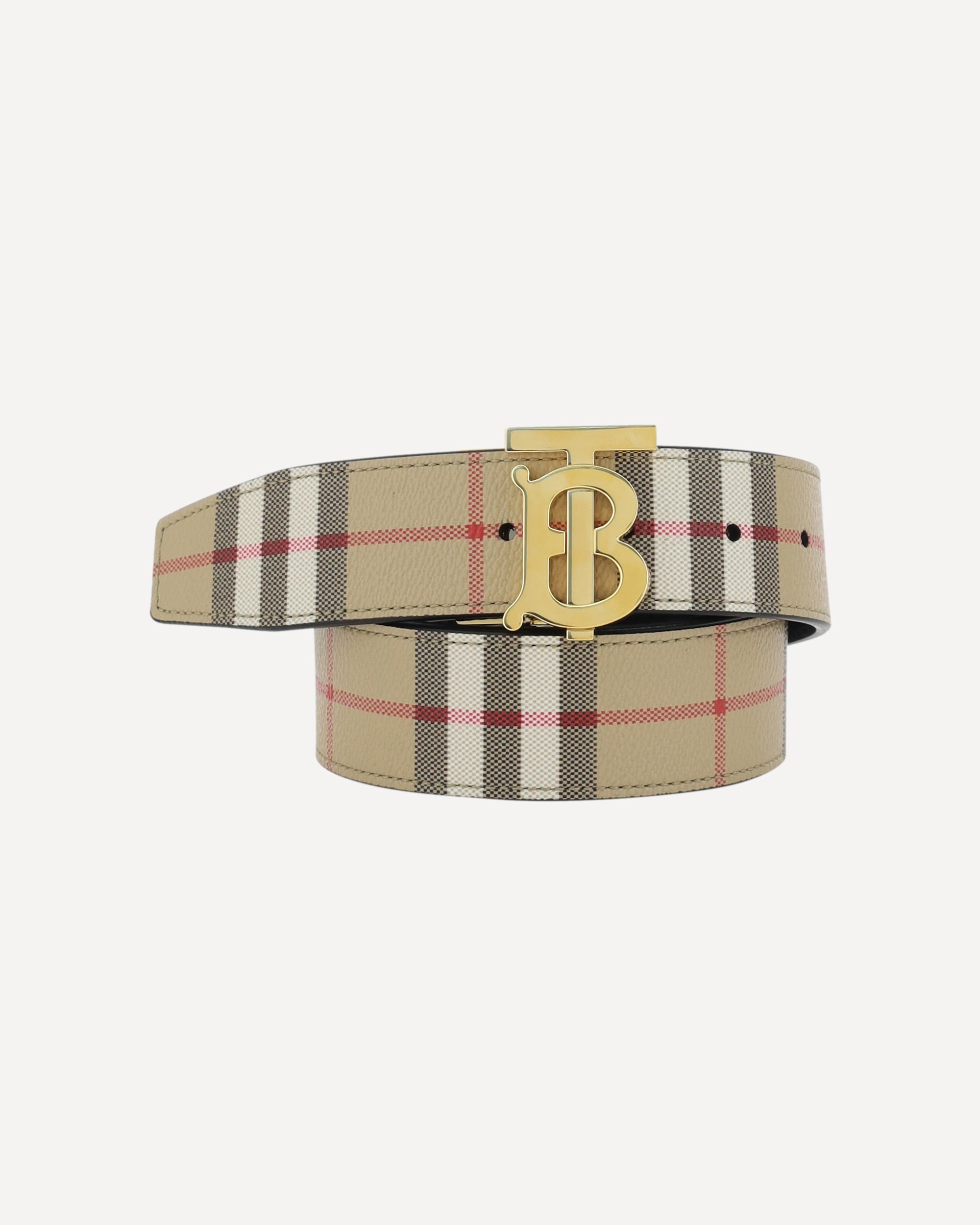 Check and Leather Reversible TB Belt