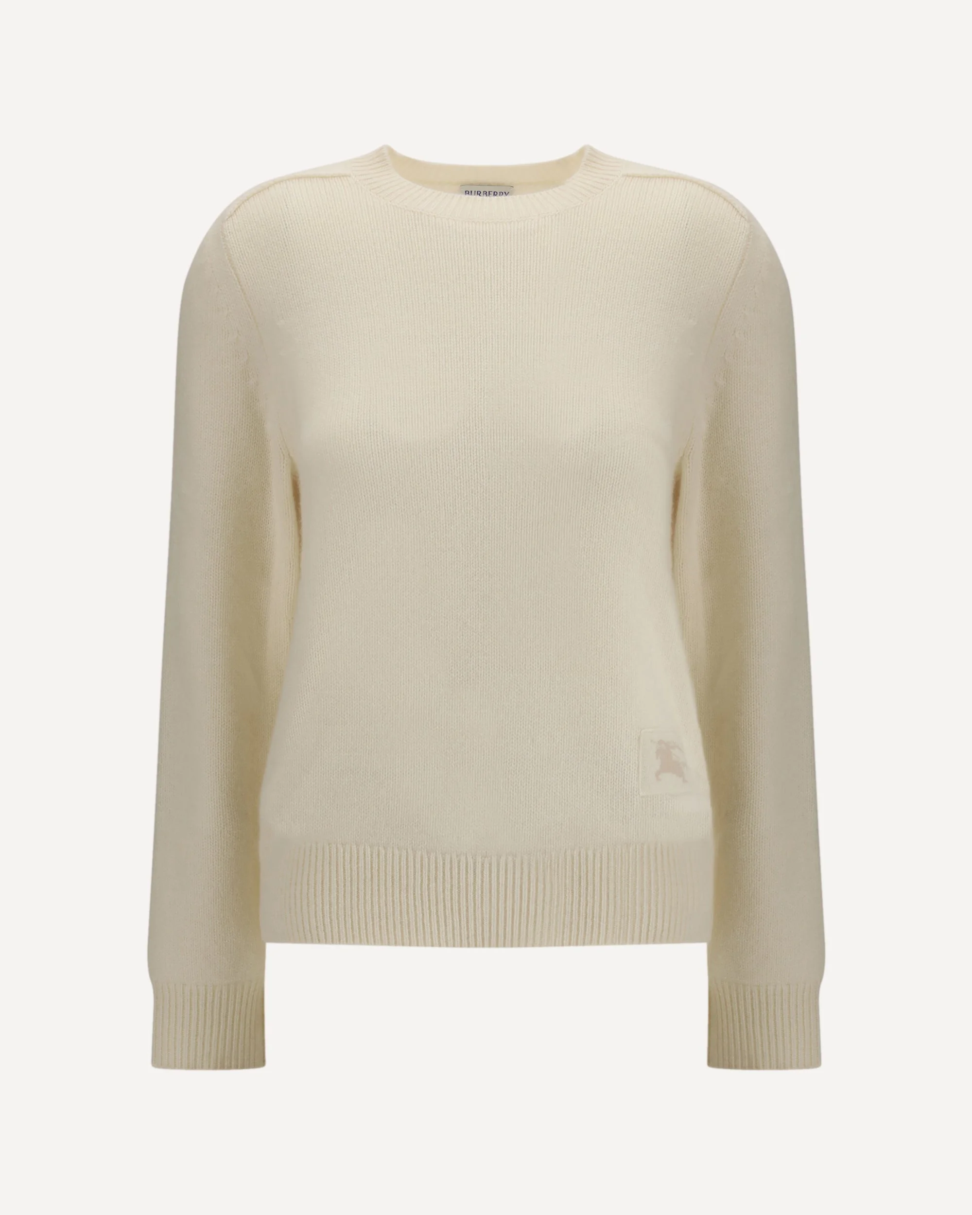 The cashmere Jumper by Burberry, crafted from ultra-soft yarn with a hint of stretch for comfort and a balanced regular fit. The crewneck design features tone-on-tone elbow patches and refined chain-stitch seams along the shoulders. The contrasting Equestrian Knight Design, knitted at the hem, adds an iconic touch. Ribbed trims complete the piece with a classic, polished finish. DETAILS - Sku: 8118314_C3997 - Season: SS26 - Fit: Regular - Composition: GENERAL 98% Kashmir/capra Hircus 1% Elastane 1% Polyamide - MADE IN CHINA