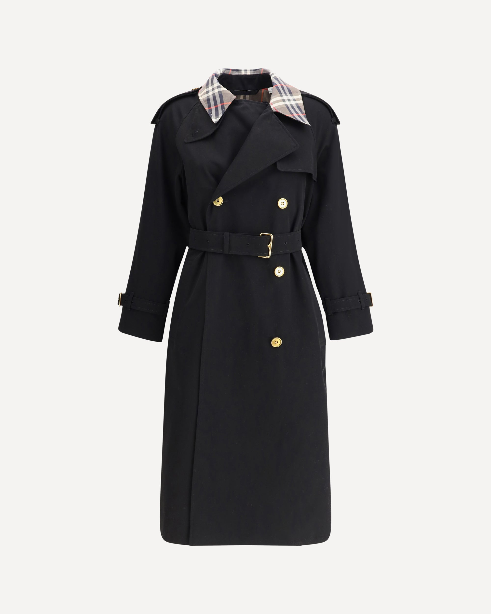Burberry's Castleford long Trench Coat is a masterpiece of elegance and functionality, crafted from rain-resistant gabardine that's perfect for braving the elements in style. The regular fit and raglan sleeves ensure comfort and freedom of movement, while metallic elements with an antiqued finish add a sophisticated touch. The double-breasted button closure and the brand's signature B-buckle belt complete the refined design. Side welt pockets and strappy cuffs contribute to the garment's practicality, while the back slit and collar decorated with classic Burberry Check, along with the inner lining with the same pattern, make this trench coat a timeless style icon. DETAILS - Sku: 8113633_A1189 - Season: AW25 - Fit: Regular - Composition: GENERAL 100% Cotton - MADE IN GREAT BRITAIN