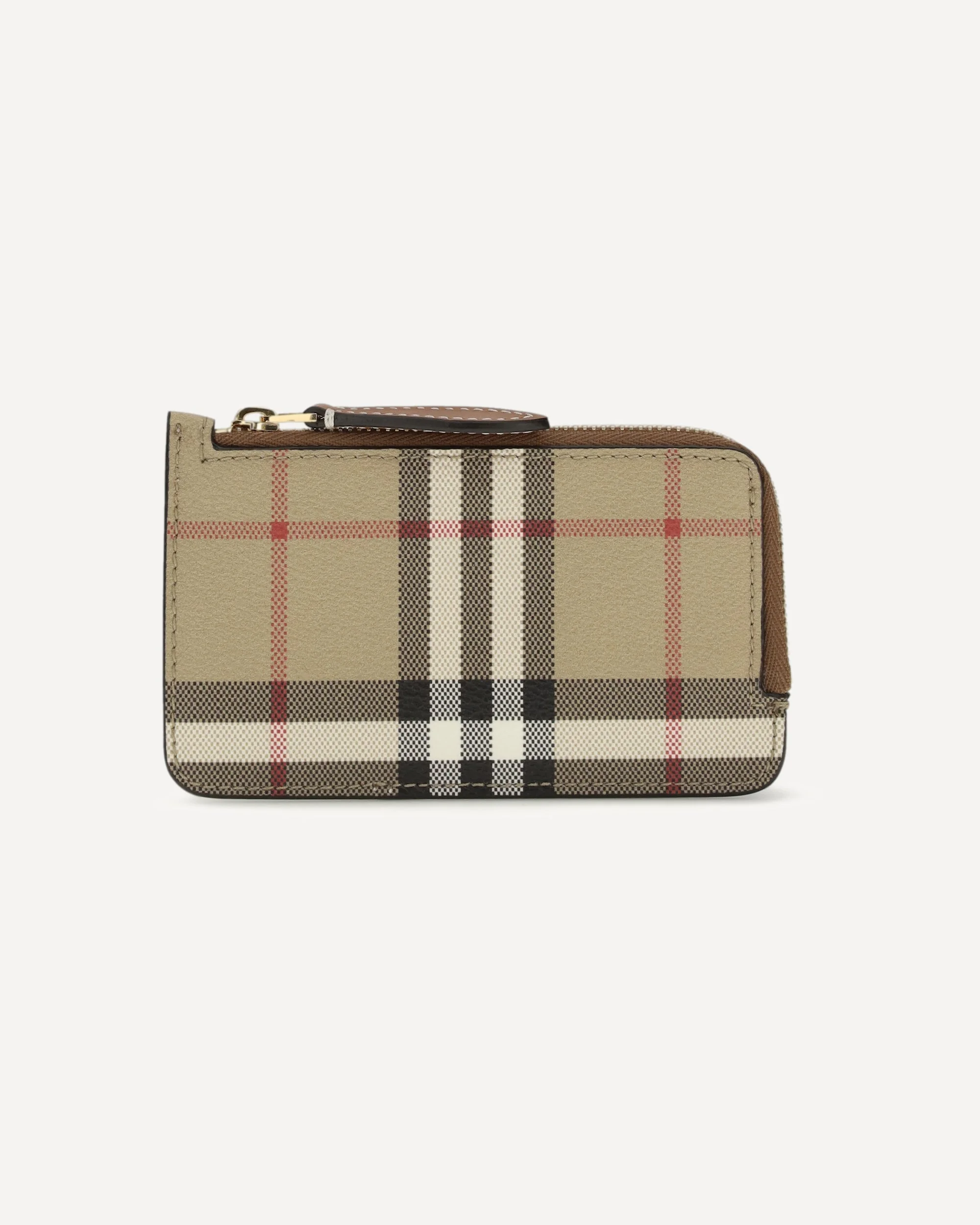 The Check Card Holder by Burberry with zipper is an elegant and functional accessory. The zipper closure ensures security, while the three card compartments offer practicality. The hand-painted edges and shiny metal elements add a touch of sophistication, making this card holder a must-have for those seeking style and functionality in a single accessory. DETAILS - Sku: 8109804_A9534 - Season: SS26 - Dimension: 13x8 - Composition: GENERAL 55% Polyurethane 25% Polyester 20% Cotton - MADE IN ITALY