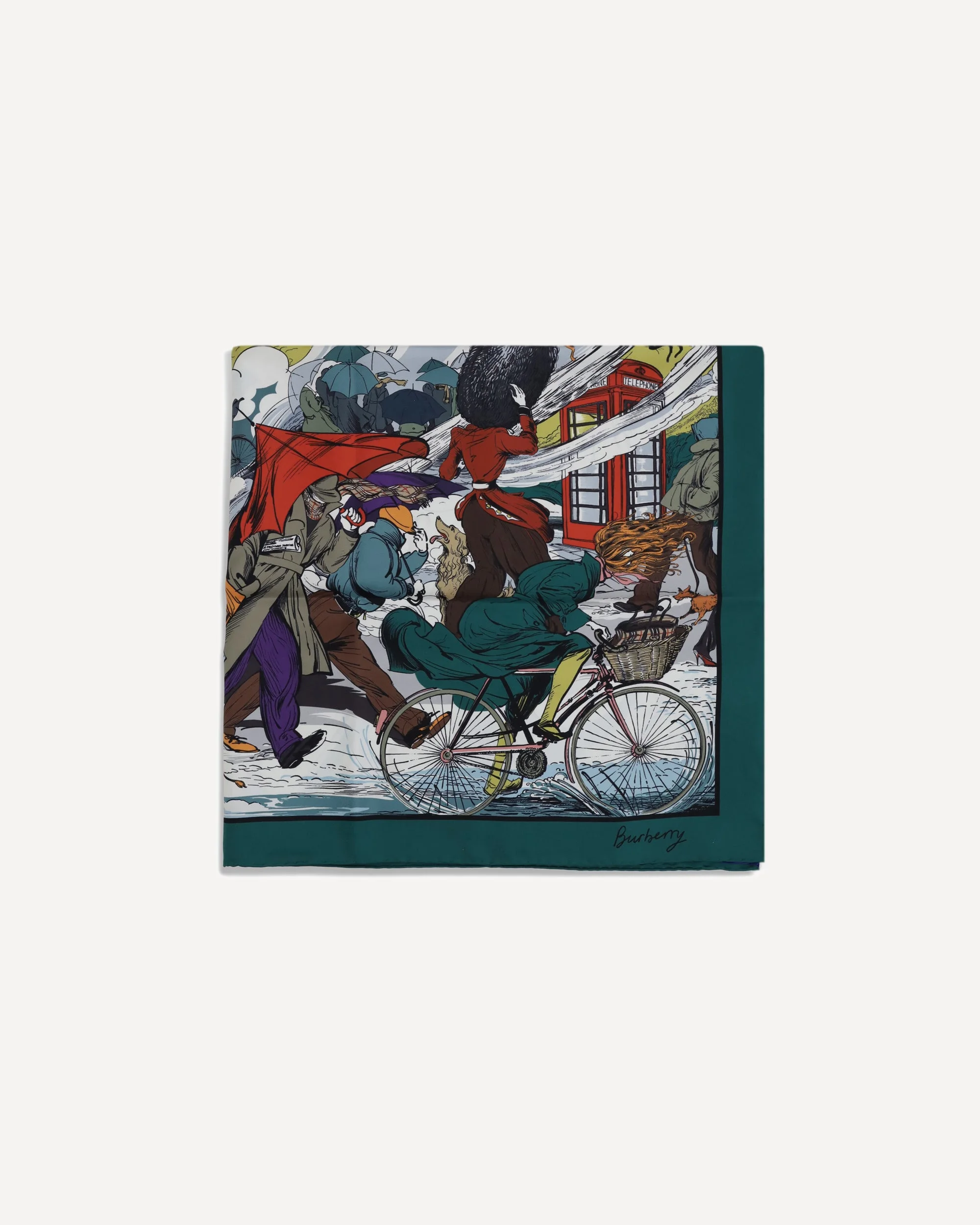 The Raining Cats and Dogs silk Scarf by Burberry playfully celebrates the charm of unpredictable English weather. Crafted in Italy from silk twill, it features a hand-drawn archival-inspired illustration depicting Londoners battling wind and rain in iconic coats and accessories. Its square shape, hand-rolled edges, and Burberry lettering along the borders elevate this refined and storytelling accessory. DETAILS - Sku: 8120327_B9171 - Season: SS26 - Dimension: 90x90 - Composition: GENERAL 100% Silk - MADE IN ITALY