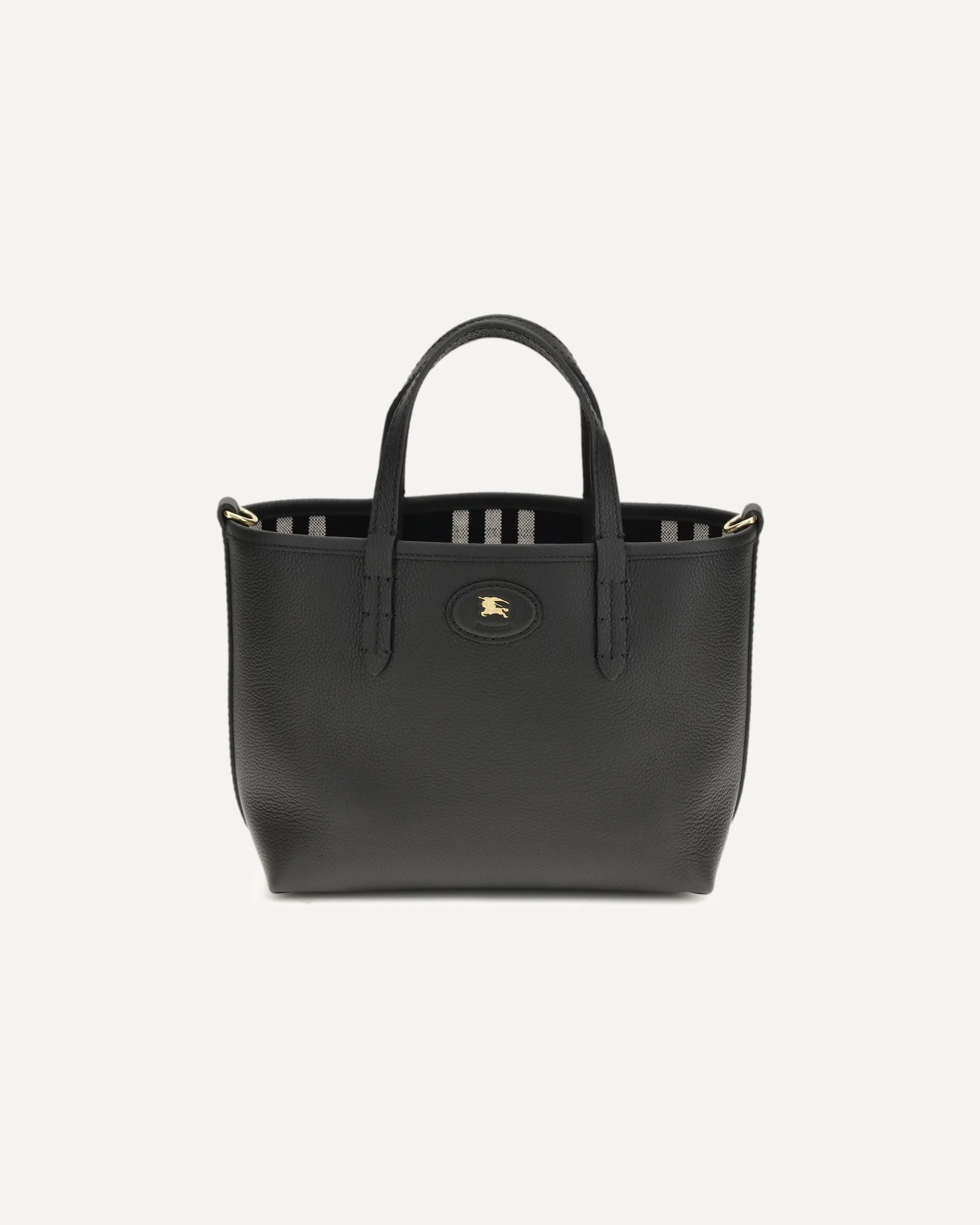 The reversible medium Bloomsbury Tote Bag by Burberry combines elegance and functionality. Featuring top handles and a detachable clutch bag, it offers versatility of use, while hand-painted edges and brushed metal detail highlight craftsmanship. The leather label with Equestrian Knight Design on the front completes the model with an iconic and distinctive touch. DETAILS - Sku: 8119629_A1189 - Season: SS26 - Dimension: 37.5x30x17.5 - Composition: GENERAL 100% Calf Leather Bos Taurus - MADE IN ITALY