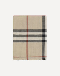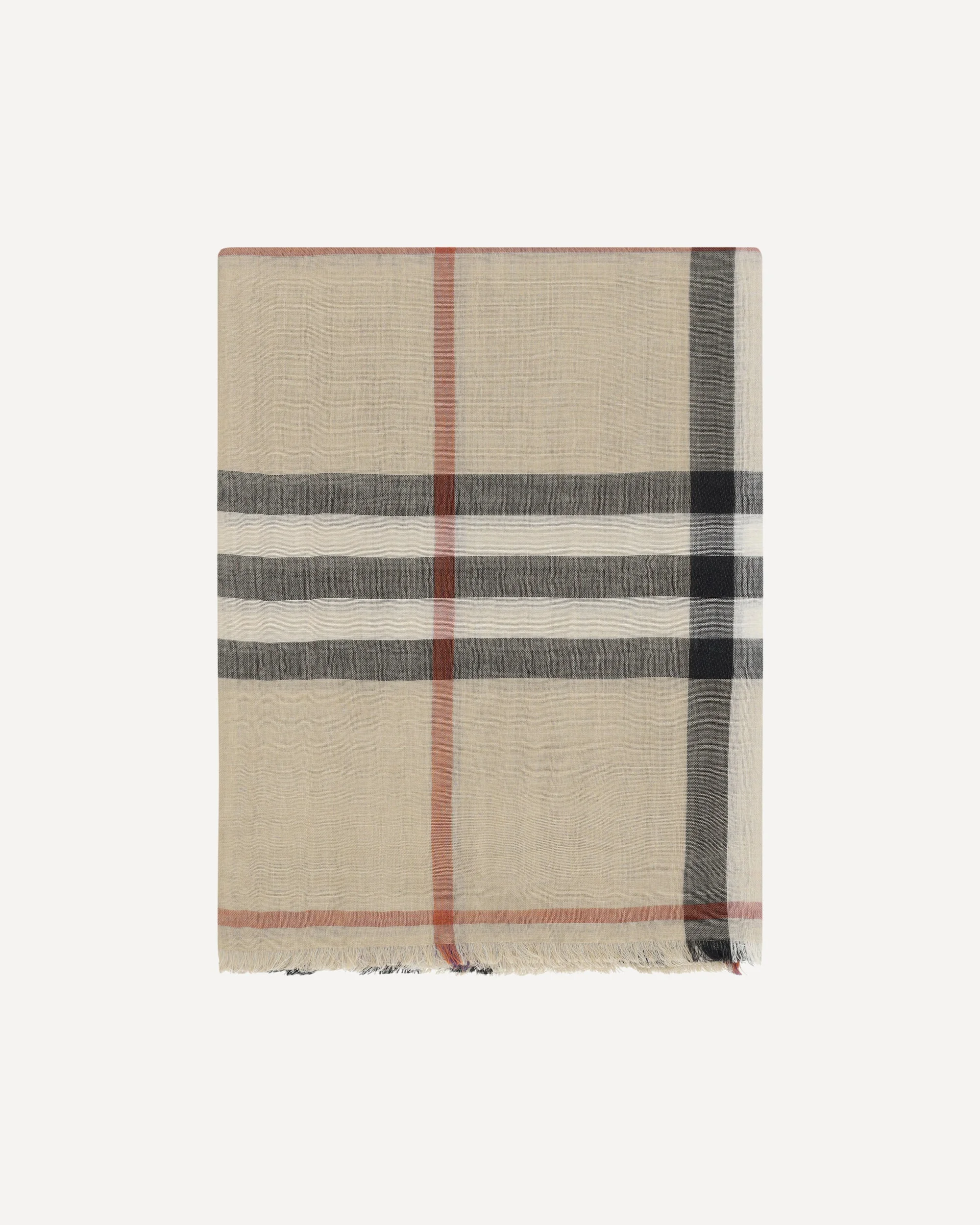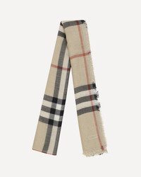 Scarf by Burberry, iconic all-over repeated Archivio Check pattern, frayed hems. DETAILS sku 8097026_A2021 composition: SILK 49% WOOL 51% color group: BROWN gender: WOMAN season: SS25 size chart: UNI category name: SCARVES