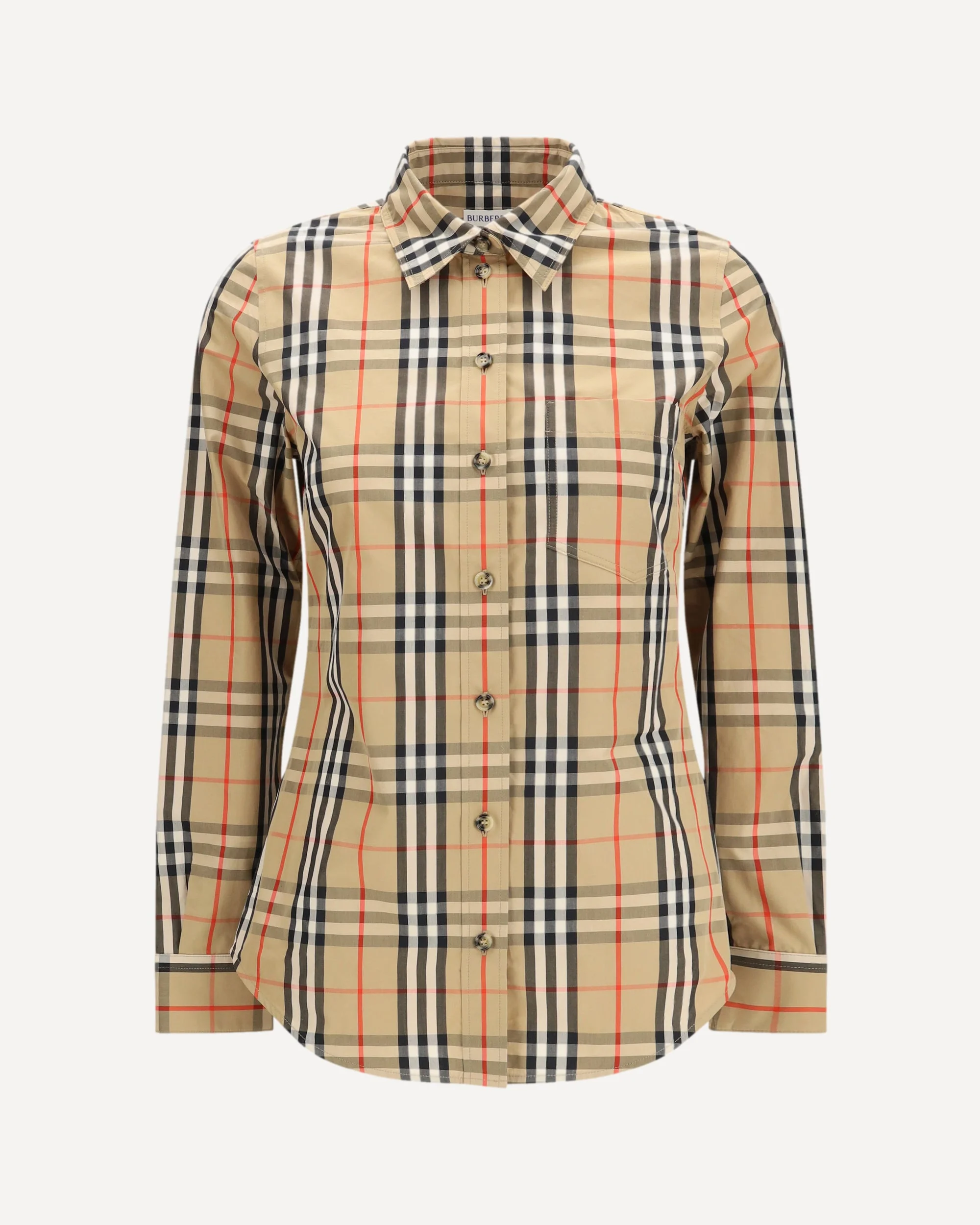 The Stretch Cotton Check Shirt by Burberry combines comfort and iconic style. Crafted from stretch cotton with the classic Burberry Check pattern, it features a button closure, button-down collar, single-button cuffs, patch chest pocket, and curved hem. Perfect for smart and casual looks with a distinctive brand touch. DETAILS - Sku: 8111847_A7028 - Season: SS26 - Fit: Regular - Composition: GENERAL 100% Cotton - MADE IN THAILAND