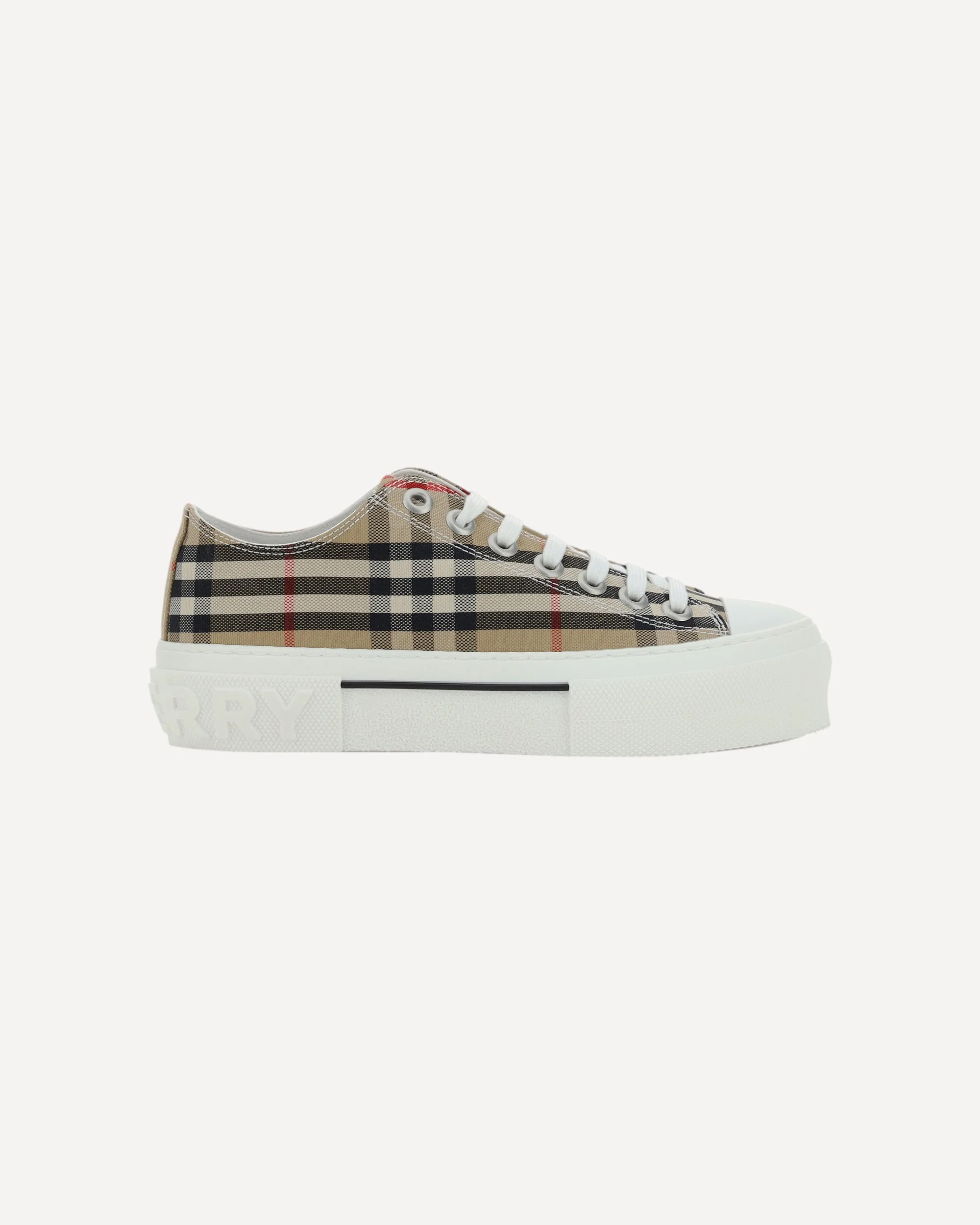 Cotton TNR Jack Low Sneakers by Burberry, rubber reinforced round toe, front lace-up closure, iconic all-over repeated brand pattern, embossed brand monogram on heel. DETAILS sku 8050506_A7028 composition : CALF LEATHER BOS TAURUS 5% COTTON 95% RUBBER 100% color group : BROWN gender : WOMAN season : AW23 size chart : SHOES WOMAN IT category name : SNEAKERS
