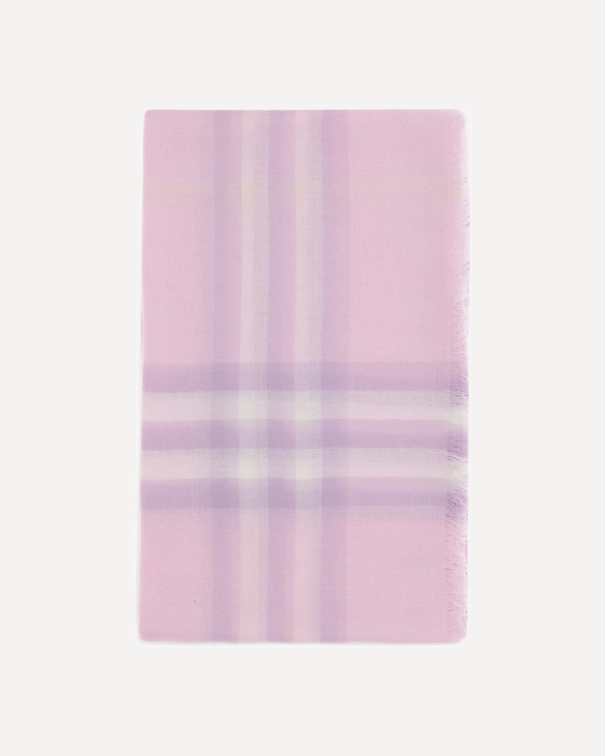 The wool Check wide Scarf by Burberry is a lightweight and refined accessory, crafted in Italy from soft wool and embellished with the iconic Burberry Check woven pattern; the rectangular shape and short, subtle bangs along the edges complete a versatile and elegant garment, ideal for adding a distinctive and timeless touch to any look. DETAILS - Sku: 8110473_A3750 - Season: SS26 - Dimension: 200x200 - Composition: GENERAL 100% Wool - MADE IN ITALY