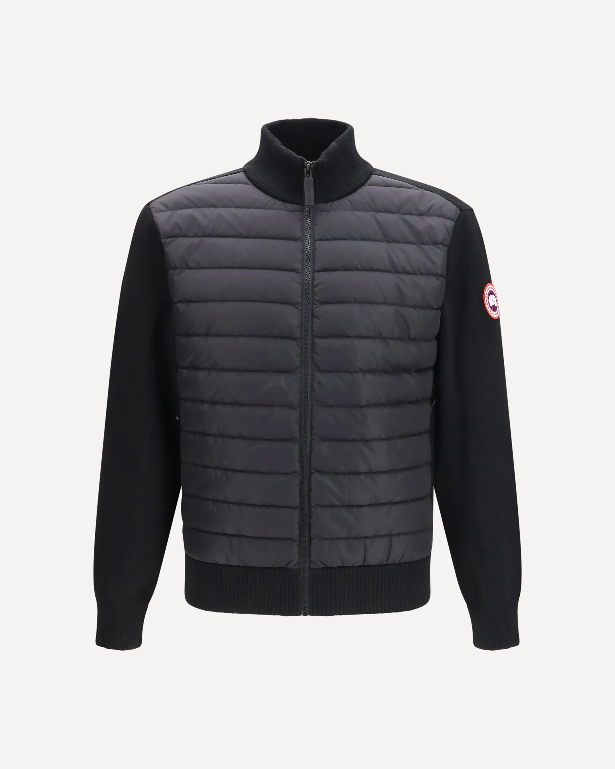 The Hybridge Down Jacket by Canada Goose combines warmth and lightness in a modern, functional design. The high collar and ribbed hems ensure protection and a great fit, while the front zipper closure makes it easy to wear every day. The padded and quilted front provides thermal insulation, while the knit back and sleeves offer comfort and freedom of movement. The garment is completed by the patch with the brand's iconic logo on the left sleeve, a symbol of quality and recognizable style. DETAILS - Sku: 6830M_9061 - Season: SS26 - Fit: Regular - Composition: GENERAL 50% Polyamide 50% Wool Ovis Aries - MADE IN ROMANIA
