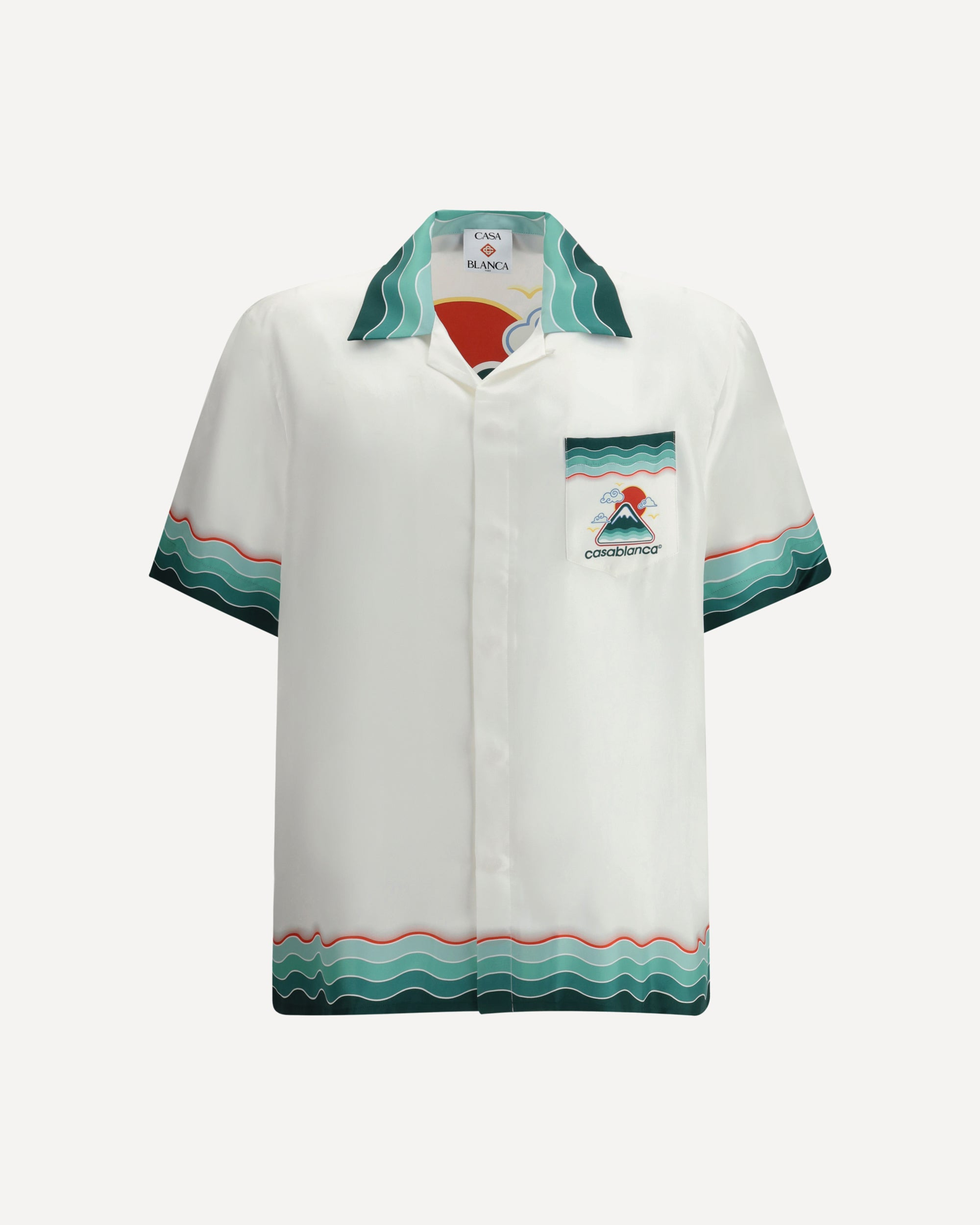 The Montagne Ondulee Shirt is an iconic short-sleeved garment made of fine printed silk twill. The all-over print, inspired by traditional Japanese iconography, interprets a refined, contemporary aesthetic with essential lines and bold colors. The Cuban collar and front closure with concealed buttons lend casual elegance, while corozo buttons with CC woven logo add a touch of exclusivity. Memphis wave-patterned piping on the collar, cuffs and hem complete the design, lending a distinctive and sophisticated graphic accent. DETAILS - Sku: MPF25SH00305_MONTAGNEON - Season: AW25 - Fit: Regular - Composition: GENERAL 100% Silk - MADE IN ITALY