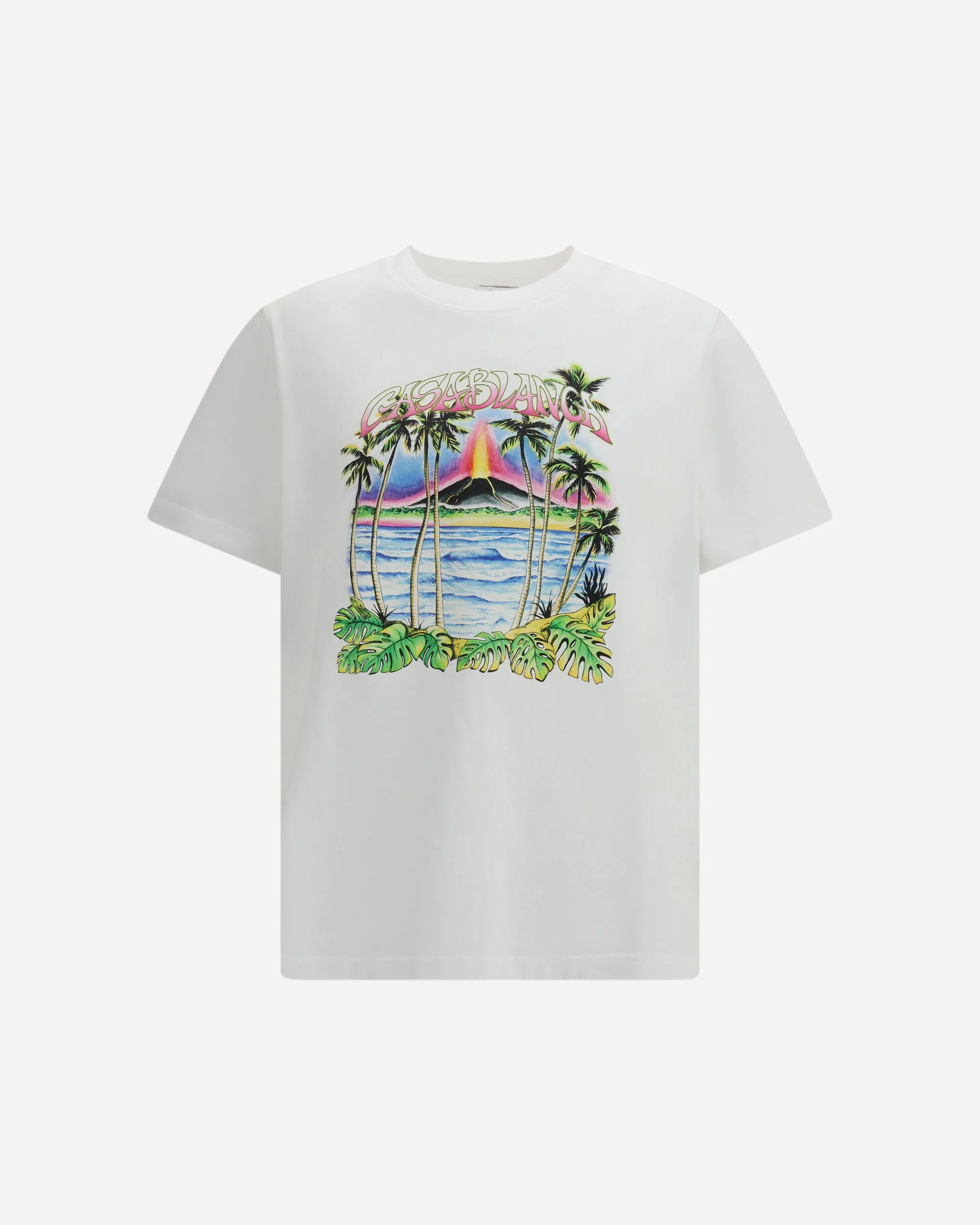 The Volcano T-shirt by Casablanca is a bold, minimalist piece, perfect for those looking for a casual yet distinctive look. The ribbed crew neck and short sleeves offer comfort and versatility, while the volcano print adds a unique graphic touch. The lettering logo on the front emphasizes the brand's identity, completing the design with a touch of sophistication. The straight hem gives a clean, modern silhouette, making this T-shirt a must-have for any wardrobe. DETAILS - Sku: MSP26JTS00122_VOLCANO - Season: SS26 - Fit: Regular - Composition: GENERAL 100% Cotton - MADE IN PORTUGAL