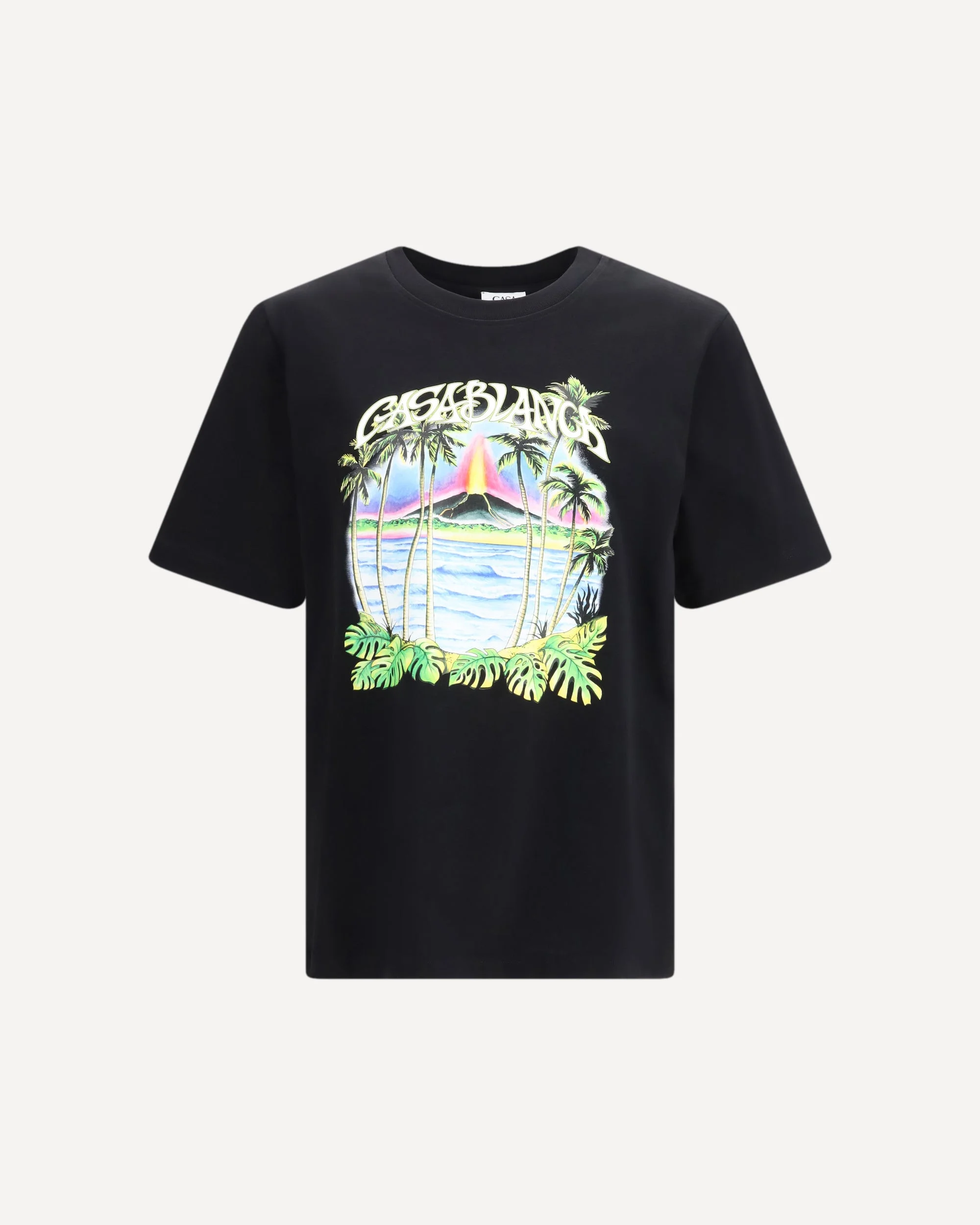 The Volcano T-shirt by Casablanca is a bold, minimalist piece, perfect for those looking for a casual yet distinctive look. The ribbed crew neck and short sleeves offer comfort and versatility, while the volcano print adds a unique graphic touch. The lettering logo on the front emphasizes the brand's identity, completing the design with a touch of sophistication. The straight hem gives a clean, modern silhouette, making this T-shirt a must-have for any wardrobe. DETAILS - Sku: MSP26JTS00121_VOLCANO - Season: SS26 - Fit: Regular - Composition: GENERAL 100% Cotton - MADE IN PORTUGAL