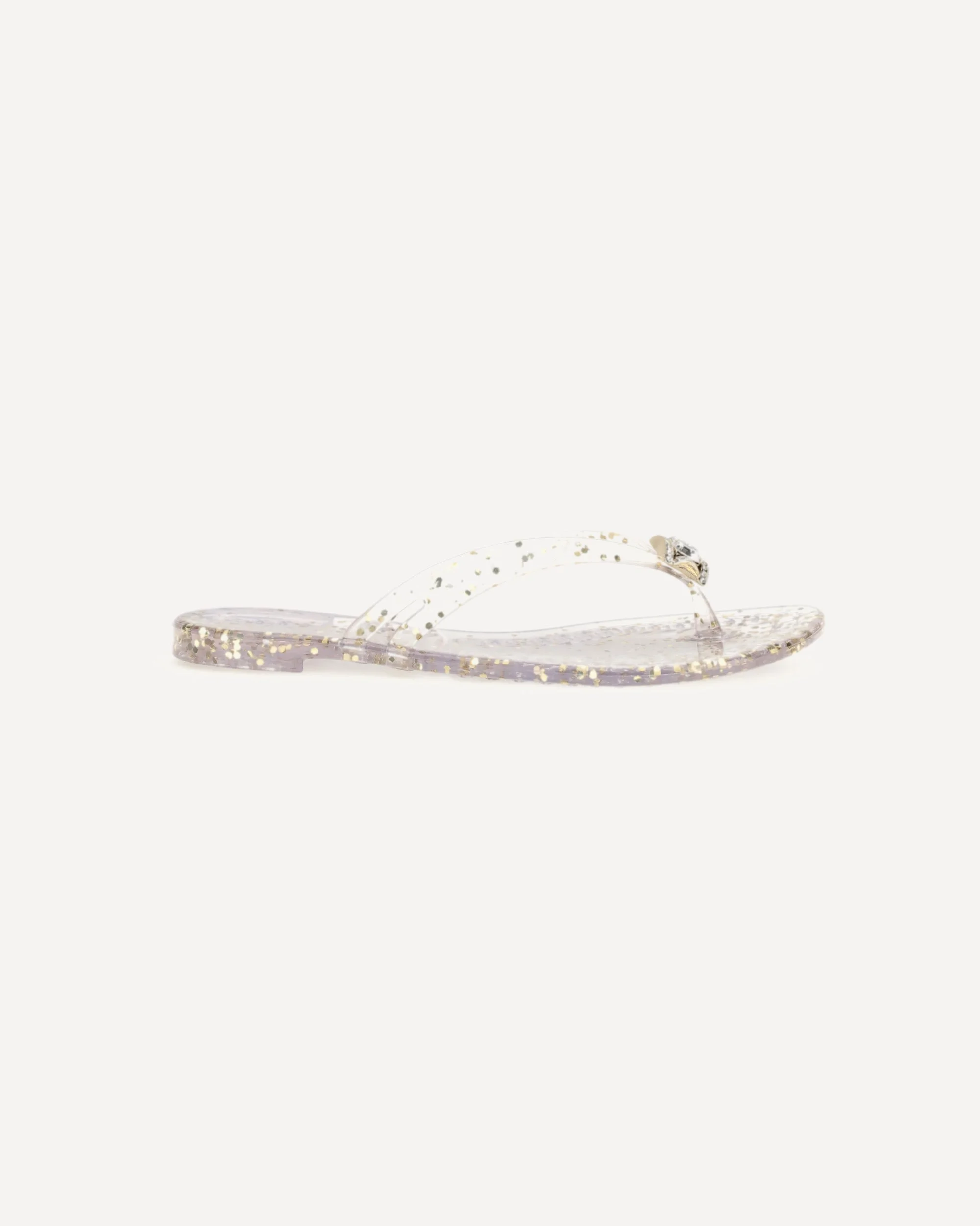 The glitter thong Sandals by Casadei are distinguished by a modern and bright design. The model, made of transparent rubber, features a flat sole that ensures comfort and practicality. The front clip detail embellished with rhinestones adds a bright and feminine touch, making the footwear ideal for enhancing even the most essential looks. DETAILS - Sku: 2Y255J0101BHGLTA513_ICEOROICON - Season: SS26 - Composition: GENERAL 100% Thermoplastic Polyurethane - MADE IN ITALY