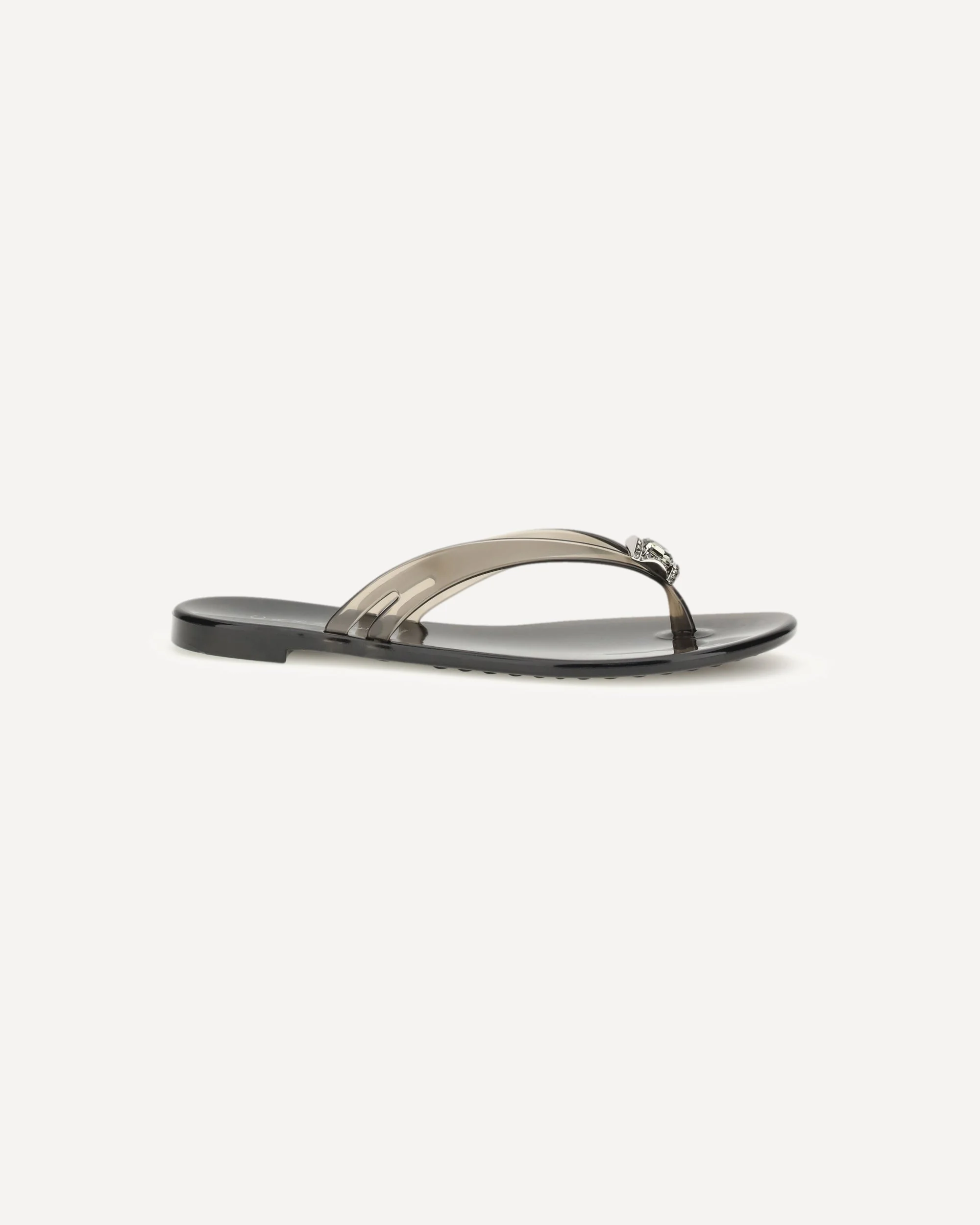 The thong Sandals by Casadei are distinguished by a modern and bright design. The model, made of transparent rubber, features a flat sole that ensures comfort and practicality. The front clip detail embellished with rhinestones adds a bright and feminine touch, making the footwear ideal for enhancing even the most essential looks. DETAILS - Sku: 2Y000D0101BEACH9000_NEROICONIC - Season: SS26 - Composition: GENERAL 100% Thermoplastic Polyurethane - MADE IN ITALY