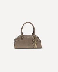 The Bowling Handbag by Chloe, crafted from smooth calfskin leather, features a structured, rounded silhouette with sturdy top handles. The interior includes a large main compartment and flat pocket, while the zipper closure provides convenience and security. The removable golden key ring, embellished with dangling charms and the letters Chloe, adds a distinctive touch and celebrates the elegance of the Maison's heritage. DETAILS - Sku: CH26SS955Q86_28H - Season: SS26 - Dimension: 33x15x15 - Composition: GENERAL 100% Calf Leather Bos Taurus - MADE IN ITALY