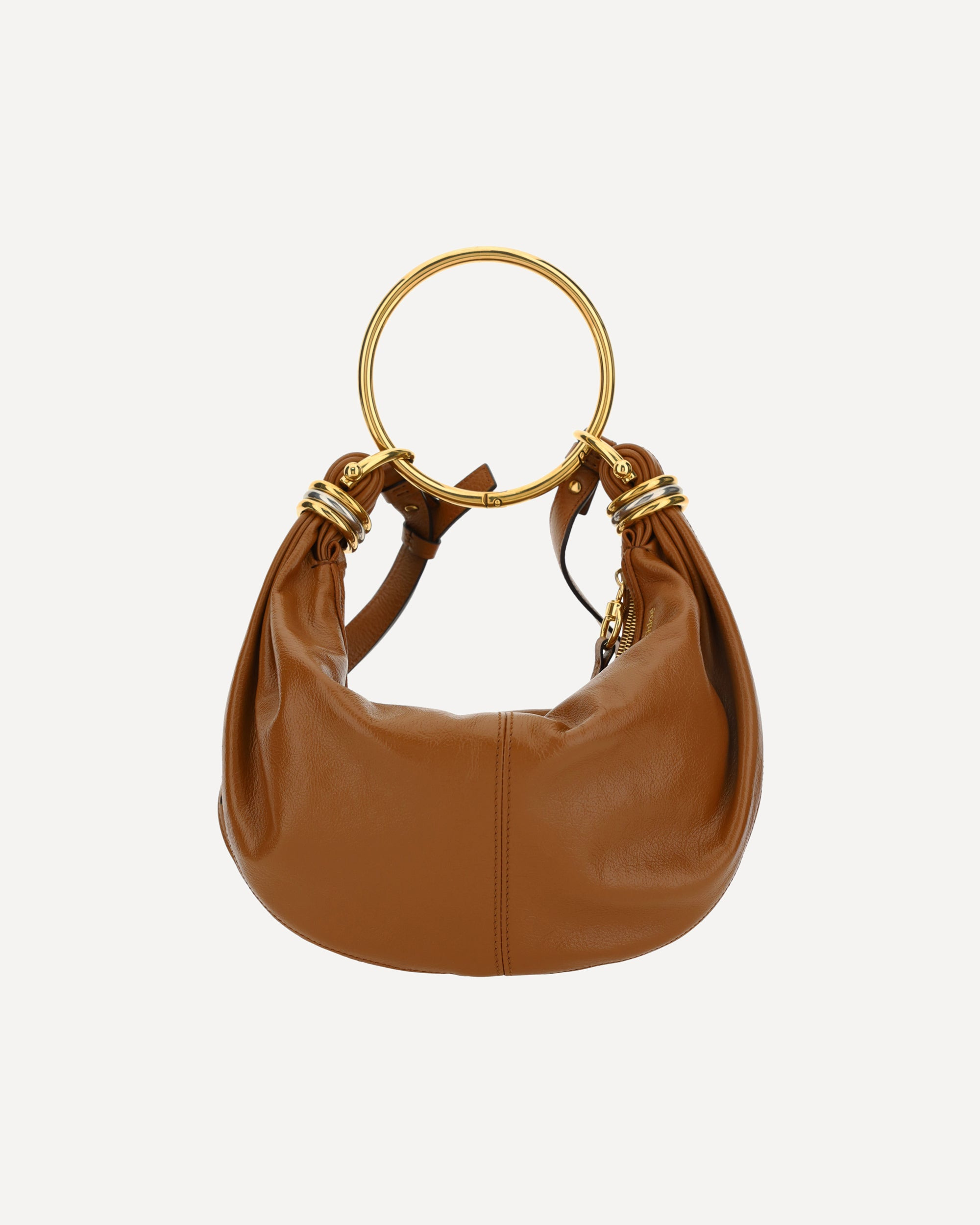 Leather Bracelet Handbag by Chloe, a round brass handle, an adjustable flat shoulder strap and removable top zipper closure, single interior compartment. DETAILS sku CHC24AS611N72_26M composition: CALF LEATHER BOS TAURUS 100% color group: BROWN gender: WOMAN season: AW24 size chart: UNI category name: HANDBAGS dimensions: 14 x 32 x 10 cm